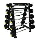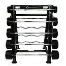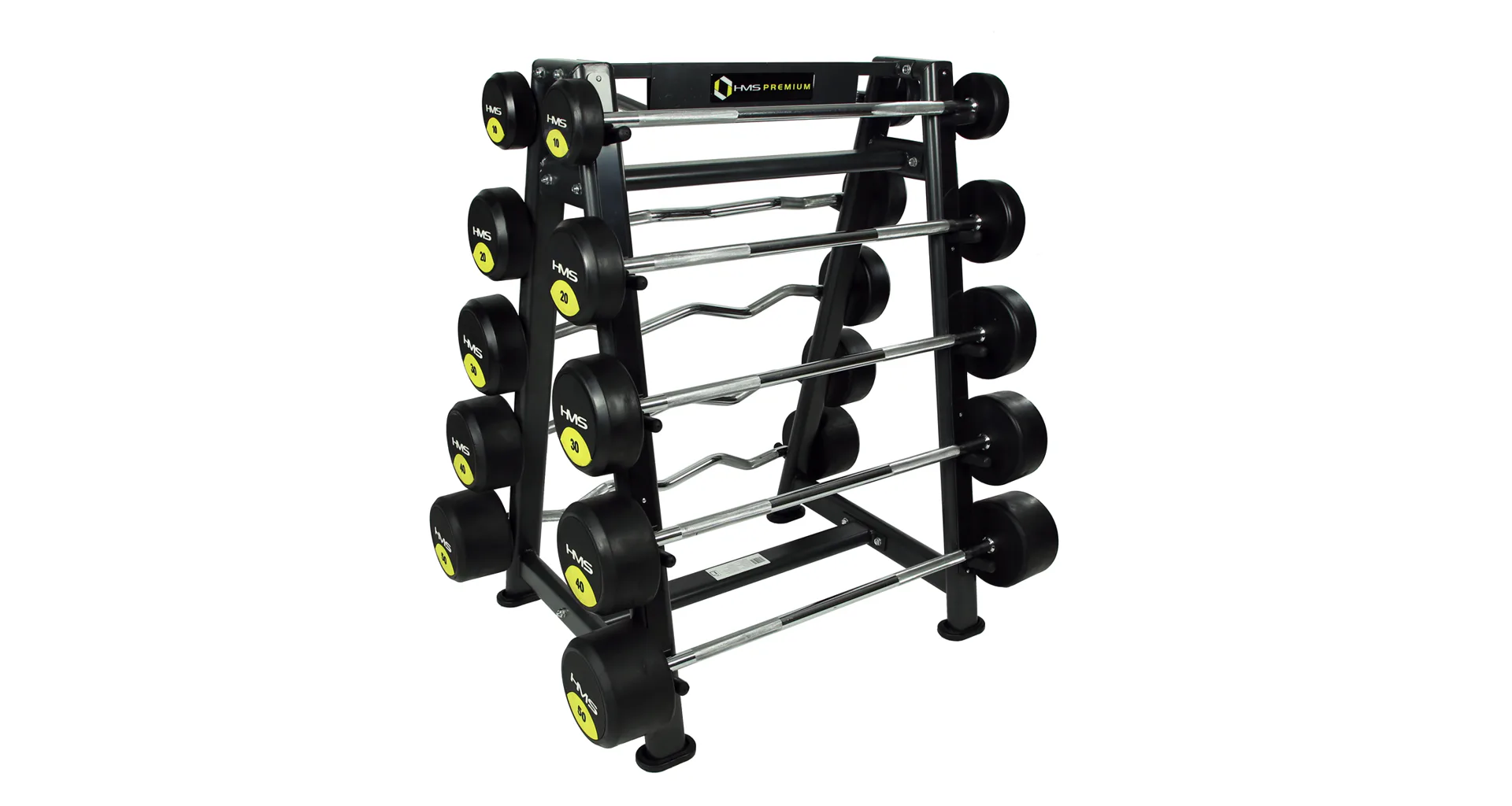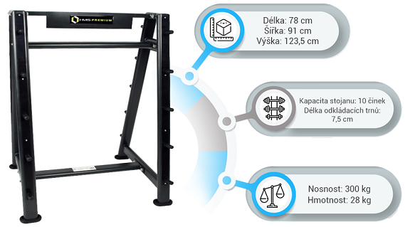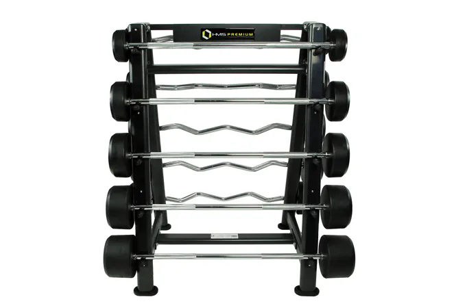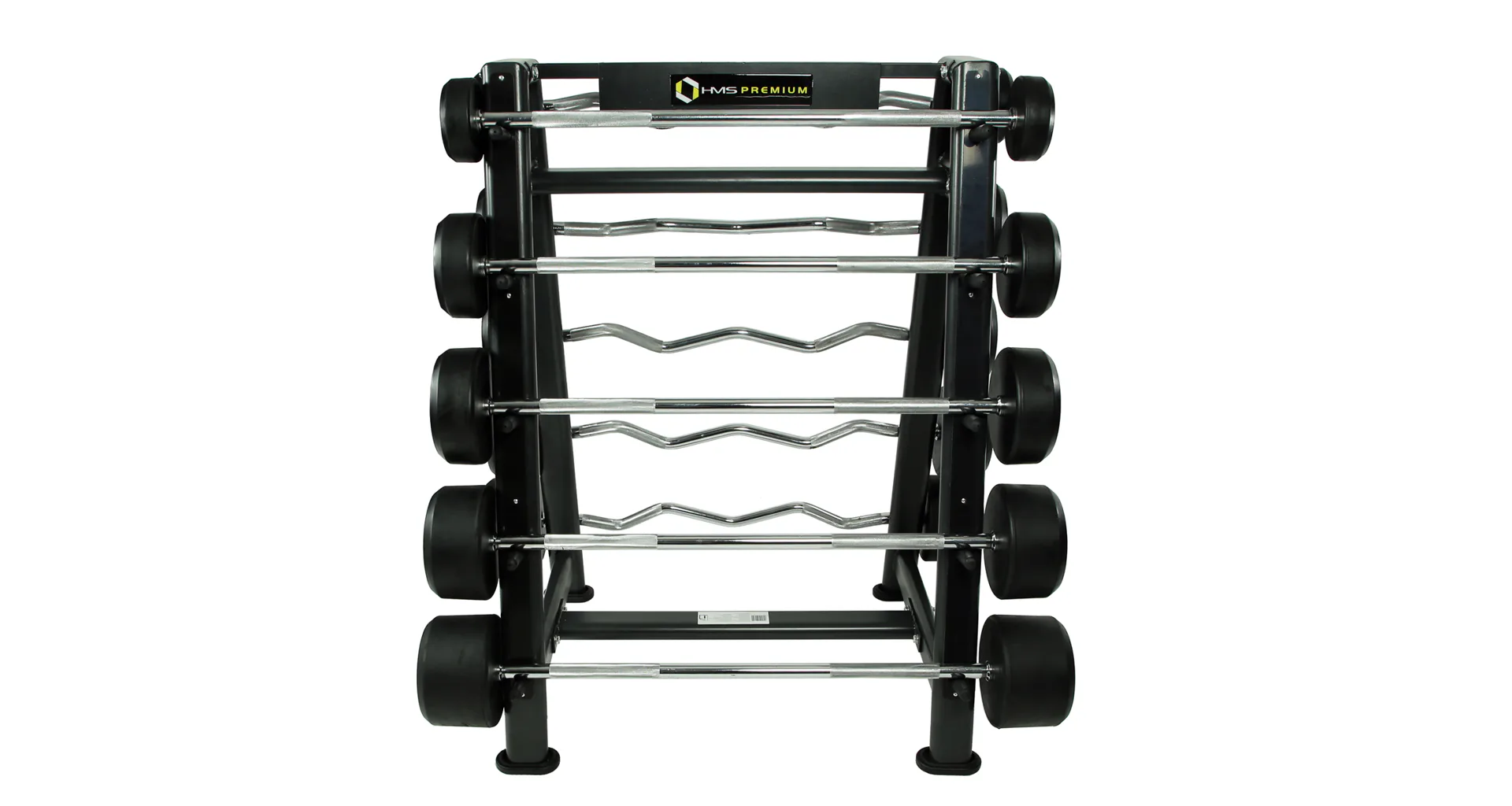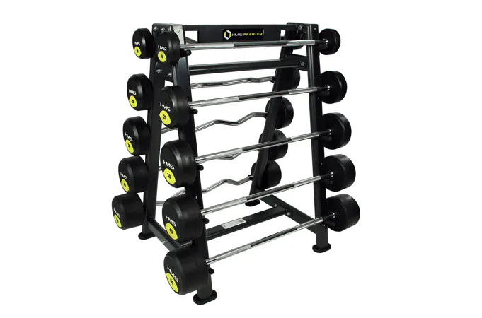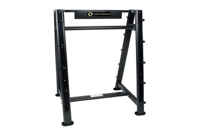 Obojstranný stojan na obojručné činky HMS PREMIUM STR05 je ideálny do každej domácej posilňovne, kde chcete mať svoje činky pekne pohromade. Tento robustný stojan pojme 10 ks obojručných činiek rôznych váh až do celkovej hmotnosti 300 kg. Oceľová konštrukcia je čierno lakovaná a pre väčšiu tuhosť je ešte v spodnej aj hornej časti spevnená oceľovou priečkou. Stojan HMS PREMIUM STR05 je navrhnutý priamo pre pevné obojručné činky HMS a to s veľkým ohľadom na bezpečie užívateľov a ukladaného náradia, avšak možno naň ukladať aj iné veľké činky, toto nie je nijako obmedzené.