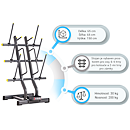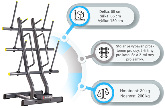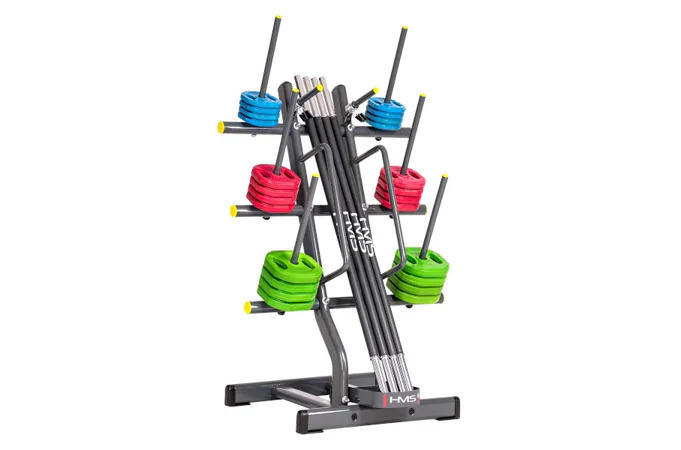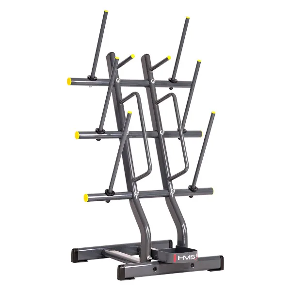 Stojan HMS Premium STR16 je navrhnutý pre prehľadné a pohodlné odkladanie hriadeľov a tanierov pre Body Pump. Stojan je vybavený priestorom pre osi, 6 tŕňmi pre kotúče a 2 tŕňmi pre zámky. STR16 je vyrobený s ohľadom na bezpečie užívateľov aj odkladaného náradia.