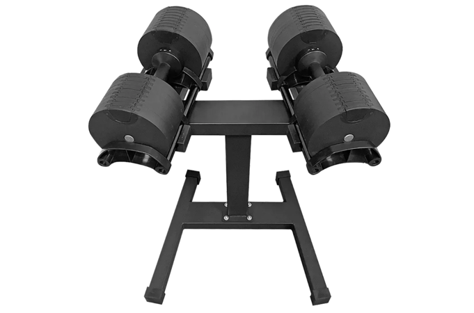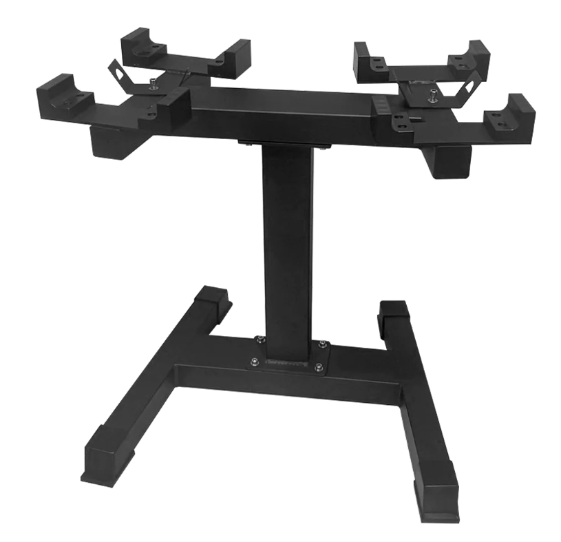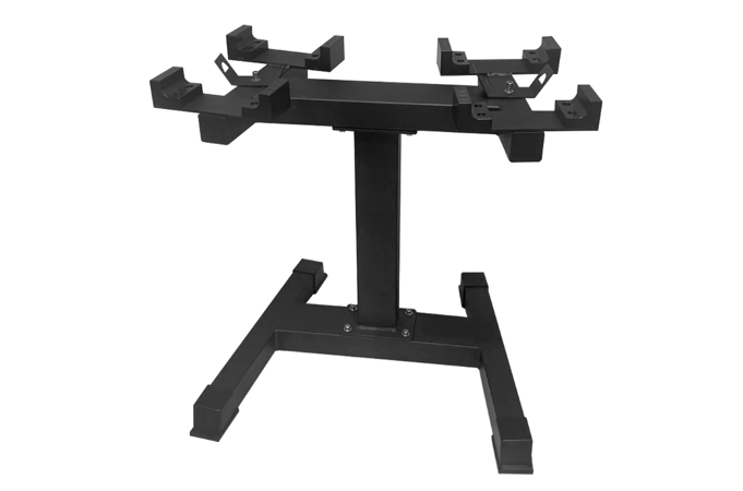 Stojan STRENGTHSYSTEM Adjustable Dumbbell Stand pre jednoručné nastaviteľné činky. Tento stojan je kompatibilný so všetkými nastaviteľnými jednoručnými činkami STRENGTHSYSTEM. Jeho výhoda je prehľadné skladovanie/odloženie jednoručných činiek, praktická výška pre ľahké zdvihnutie činiek a stabilná konštrukcia.