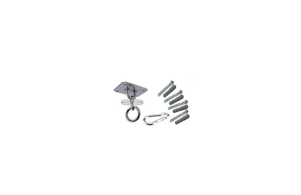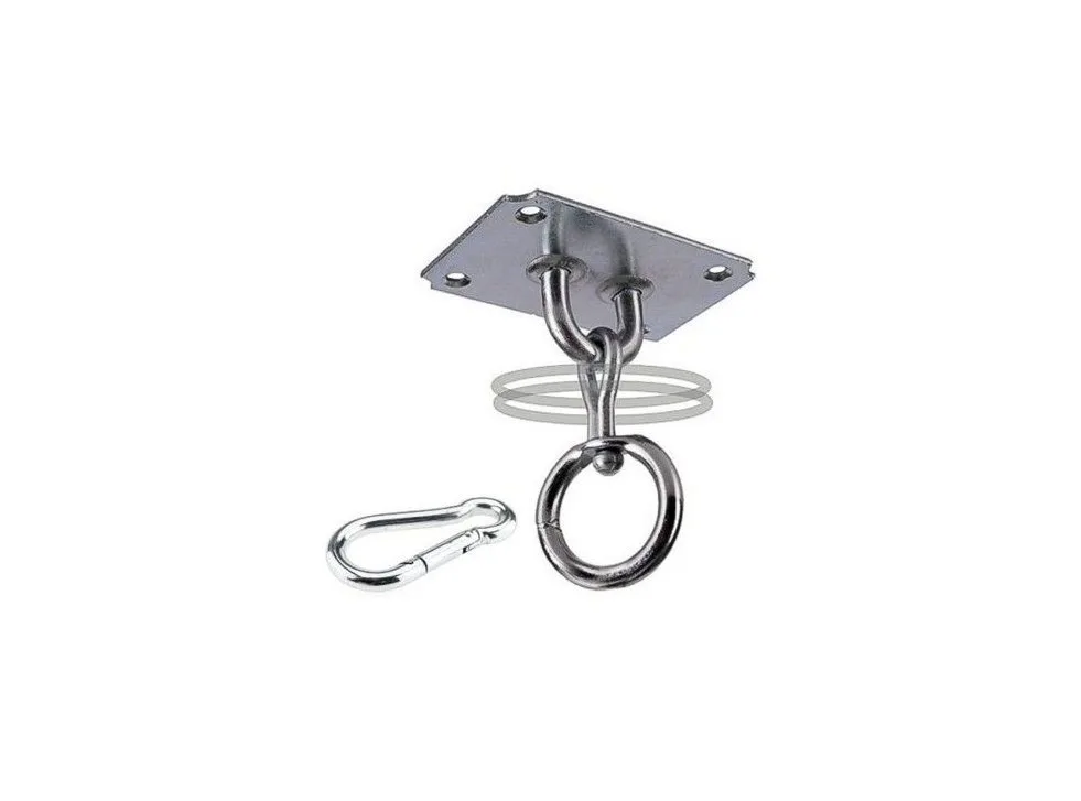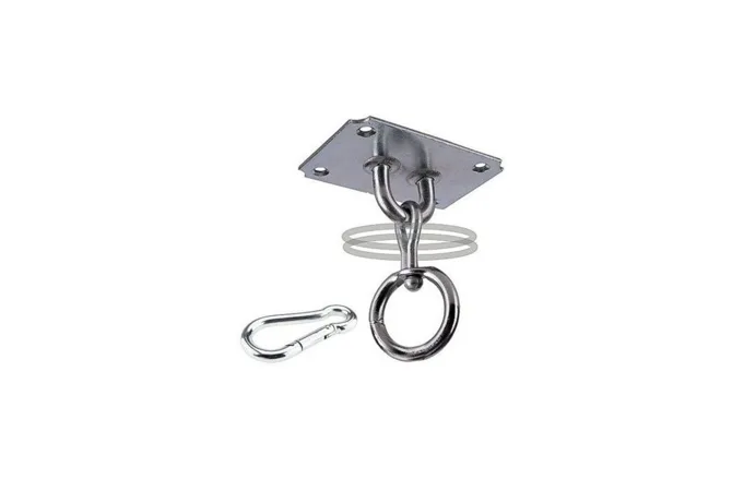 Stropný držiak na boxovacie vrecia, hrušky a speedbagy. Skvelá voľba pre domáce použitie. Varianta vhodná pre boxovacie vrecia s nižšími hmotnosťami. Držiak ideálne rozloží celú váhu vreca. Balenie obsahuje aj montážnu sadu pre upevnenie.