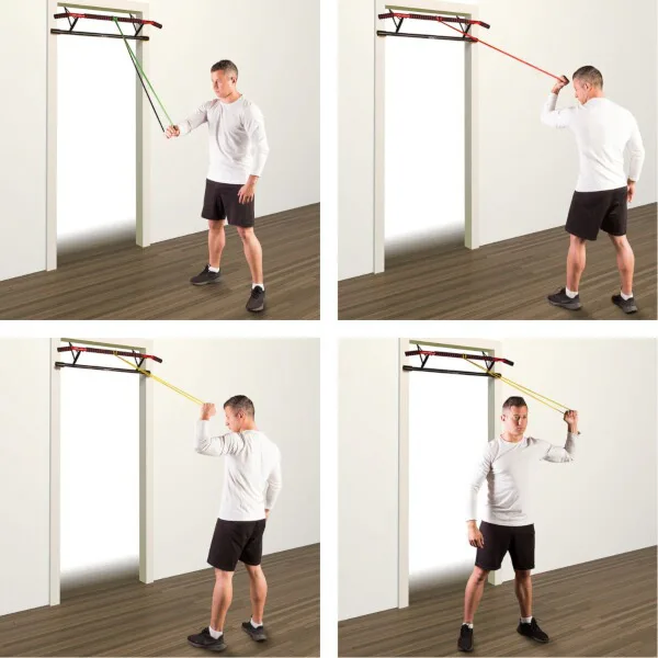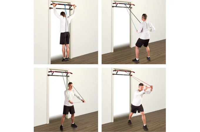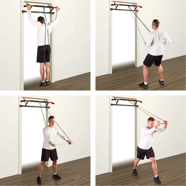 Pokiaľ chcete trénovať s gumami, častým problémom je nedostatok miesta na ich pripevnenie. S touto sadou také problémy nenastanú. Elastické gumy je možné veľmi ľahko pripevniť k hrazde a následne s ich pomocou vykonávať mnoho cvikov pre rôzne svalové skupiny. Cviky na hrudník, najširšie svaly chrbta, bicepsy, tricepsy alebo svaly nôh nebudú problém. S takou sadou môžete vykonávať komplexné cvičenia pre celé telo. Ďalšou výhodou je, že hrazda aj gumy sú výrobky najvyššej kvality.