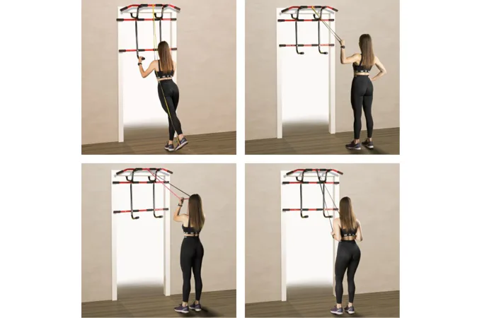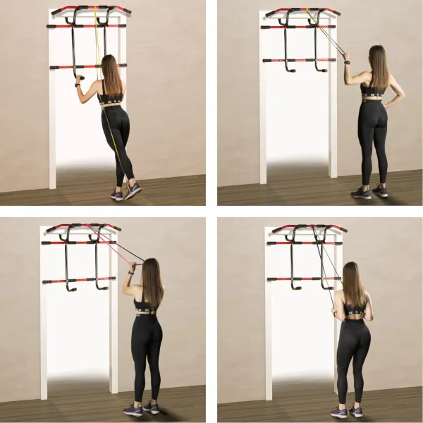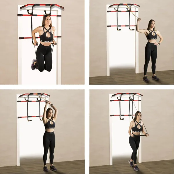 Pokiaľ chcete trénovať s gumami, častým problémom je nedostatok miesta na ich pripevnenie. S touto sadou také problémy nenastanú. Elastické gumy je možné veľmi ľahko pripevniť k hrazde a následne s ich pomocou vykonávať mnoho cvikov pre rôzne svalové skupiny. Cviky na hrudník, najširšie svaly chrbta, bicepsy, tricepsy alebo svaly nôh nebudú problém. S takou sadou môžete vykonávať komplexné cvičenia pre celé telo. Ďalšou výhodou je, že hrazda aj gumy sú výrobky najvyššej kvality.