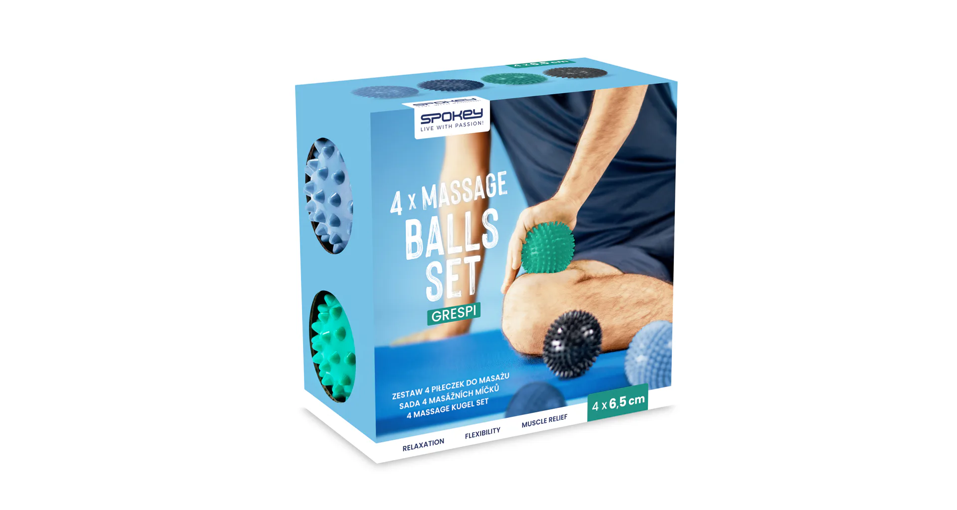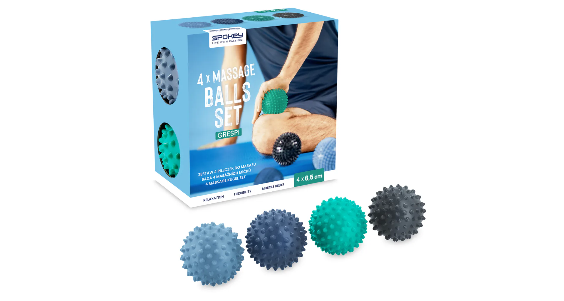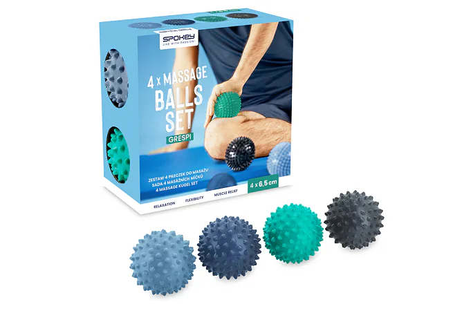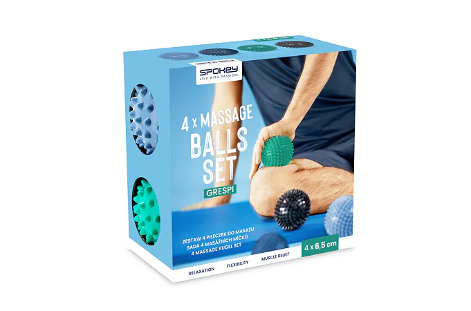 Sada masážnych loptičiek Spokey GRESPI je určená na stimuláciu krvného obehu, boj proti celulitíde a používa sa aj pri antistresových cvičeniach. Pomôžu vám uvoľniť svalové napätie a podporiť regeneráciu pokožky. Sú také malé, že sa bez problémov zmestia do kabelky alebo batohu, vďaka čomu ich môžete mať stále pri sebe. Masáž s použitím masážnych loptičiek GRESPI je založená na bodovom tlaku a masírovaní miest, ktoré spôsobujú bolesť. Takáto masáž okamžite uvolňuje svalové napätie a zmierňuje bolesť.