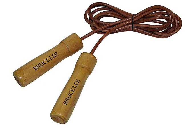 Švihadlo kožené BRUCE LEE Leather Pro prevedenie "zo starej školy" s kovovými ložiskami obľúbené u boxerov a v rámci všetkých bojových športov. Materiálom lanka je prírodná koža a ťažšie drevené rukoväte s lakovaným povrchom.