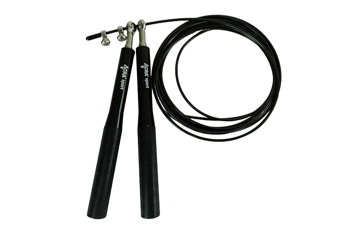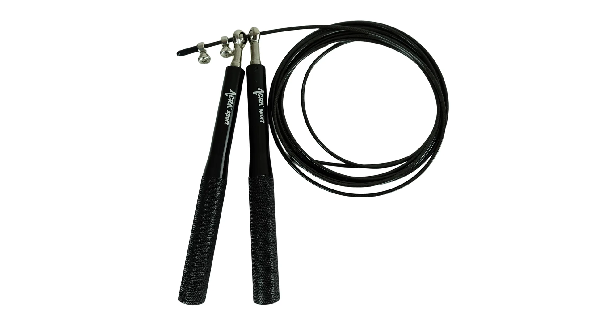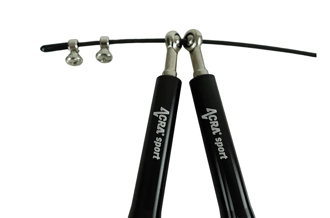 Švihadlo Acra čierne je vynikajúcou cvičebnou pomôckou na zlepšenie celkovej kondície. Rukoväte, vyrobené z pevného hliníka, majú protišmykový povrch, čo zaručuje bezpečné a pohodlné uchopenie. Kovové otočné ložiská s uťahovacím skrutkovaním umožňujú jednoduché nastavenie dĺžky lanka podľa potreby. Samotné lanko má ocelové jadro, chránené gumovou bužírkou, a je zakončené gumovými odnímateľnými puzdrami, ktoré umožňujú presné skrátenie švihadla.