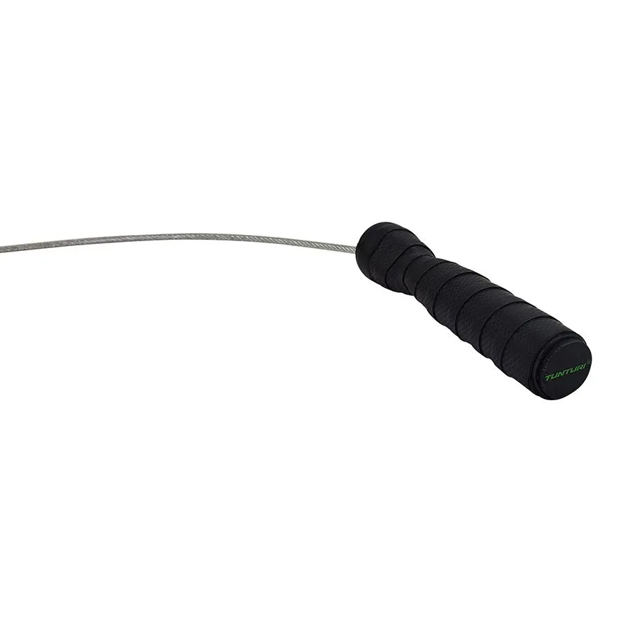 Švihadlo so závažím 180 g TUNTURI je skvelým doplnkom pre mnoho druhov kondičných cvičení, tým najčastejším sú potom preskoky krúžiaceho švihadla. Vykonávaním tohto cviku dynamicky posilňujete svalstvo nôh a súčasne rozvíjate a posilňujete činnosť vnútorných orgánov, obehového, dychového a termoregulačného systému. Tento jednoduchý, ale maximálne efektívny cvik Vás núti k pravidelnému rytmu dýchania a výrazne prispieva k zlepšeniu kĺbovej pohyblivosti. Rúčky švihadla sú ergonomicky tvarované a lano švihadla je vyrobené z ocele potiahnutej PVC. Švihadlo obsahuje 2 prídavné závažia, každé po 180 gramoch. Záťaž je možné vybrať z rukoväte.