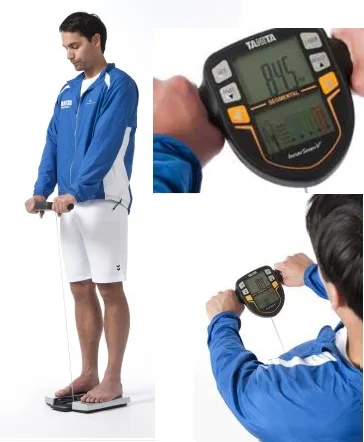 Uživatel stojí na 4 plochách pro chodidla na váze a jemně tlačí rukama elektrody, které jsou pohodlně uloženy na zasunovacích kabelech. Váha poté zašle slabý signál z 8 elektrody z paží a nohou skr tělo. Odpor tohoto měření (BIA) je poté dosažen do vzorců ke zjištění přesných a osobních tělesných dispozic.
