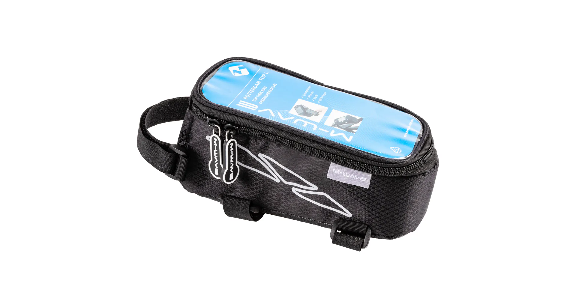 Rámová taška M-Wave Rotterdam L s držiakom na telefón obsahuje priehradku na zips, takže si do nej môžete vložiť peňaženku, kľúče a ďalšie drobnosti. V hornej časti tašky je priehľadné PVC okienko, ktoré umožňuje ovládanie dotykovej obrazovky. Držiak mobilného telefónu je zaistený suchým zipsom, ktorý je ľahko dostupný.