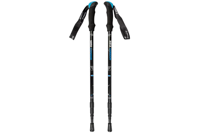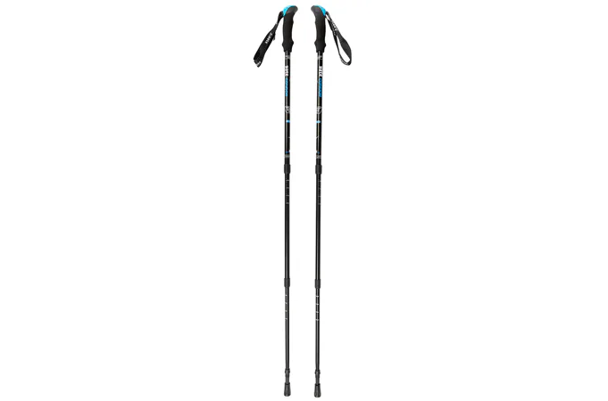 Teleskopické palice z kvalitného hliníka 6061 as odpružením (odpruženie je možné vypnúť). Ergonomické penové rukoväte pre presný a hrejivý úchop a mäkký popruh spríjemňuje držanie. Palice majú skrutkovacie nastavenie dĺžky, oceľové hroty a sú dodávané s dvoma tanieriky (veľký a malý) a kryty na hroty.