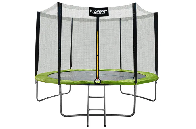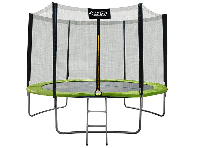 Trampolína LIFEFIT 10' s priemerom skákacej plochy 305 cm je výborným pomocníkom na zabezpečenie zábavy pre deti či dospelých. Je určená pre exteriérové využitie na inštaláciu na zem. Trampolínu je možné ľahko a rýchlo zmontovať a v prípade potreby je možné jednoducho premiestniť na iné miesto. Ako materiál na konštrukciu bola použitá galvanizovaná oceľ a materiálom skákacej plochy je polypropylén. Ochrannú sieť nájdete pozdĺž celej trampolíny. Tak máme zaručenú maximálnu bezpečnosť, takže nehrozí žiadny úraz z vypadnutia. Na trampolínu sa pohodlne dostanete po schodíkoch, ktoré sú súčasťou balenia, rovnako ako ochranná sieť