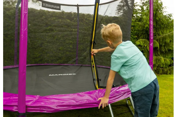 Vnútorná ochranná sieť je súčasťou balenia a nie je potrebné ju dokupovať zvlášť. Vnútorná ochranná sieť je bezpečnejšia ako vonkajšia sieť - bráni prístupu skákajúceho do časti s pružinami. Vstupný priestor je zaistený tromi prackami a bráni vypadnutiu. Tyče sú obalené ochranným návlekom z mäkčenej peny.