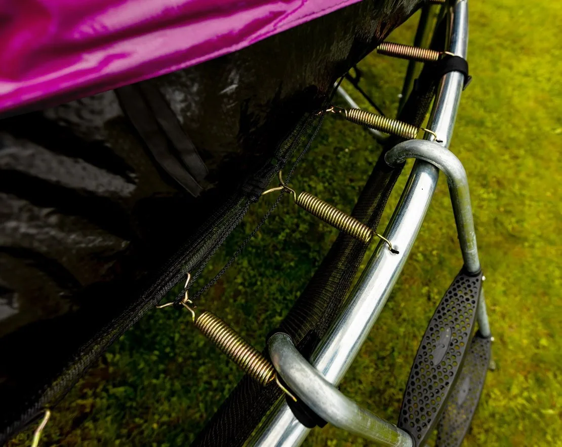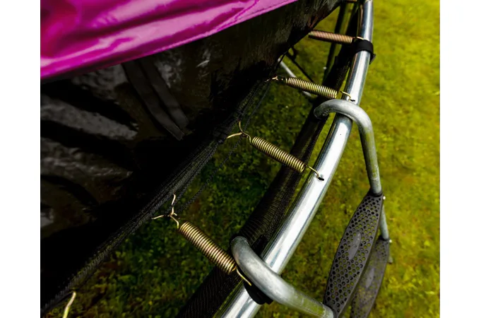 Nohy trampolíny sú samostatné a zvyšujú stabilitu celej trampolíny. Spojenie tyčí nôh trampolíny a siete je istené špeciálnymi sponami.