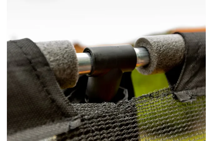 Vnútornú ochrannú sieť podopiera osem dynamicky prehnutých tyčí a napnutú ju drží spevnená horná obruč. Skákacia plocha je vyrobená z veľmi odolného a neabrazívneho materiálu s vysokou životnosťou. Sieť je súčasťou balenia a nie je potrebné ju dokupovať zvlášť. Vnútorná ochranná sieť je bezpečnejšia ako vonkajšia sieť - bráni prístupu skákajúceho do časti s pružinami. Vstupný priestor je zaistený tromi prackami a bráni vypadnutiu. Tyče sú obalené ochranným návlekom z mäkčenej peny.