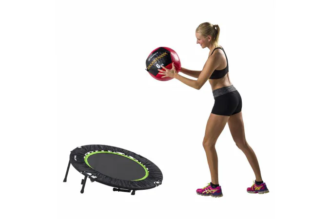 Štyri odklápacie nohy premieňajú trampolínu na odrazový alebo naklonený skákacie cvičenia.