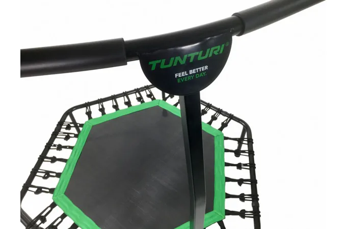 Trampolína s bezpečnostnou rukoväťou a priemerom Ø 135 cm. Trampolína Hexagon Tunturi je komplexný cvičebný doplnok disponujúci rukoväťou. Značne zlepšuje koordináciu, stabilitu a celkovú rovnováhu tela. Pri cvičení pomáha zapojiť všetky svalové skupiny na tele. Trampolína má stabilnú oceľovú konštrukciu a je vhodná na vnútorné i vonkajšie použitie.