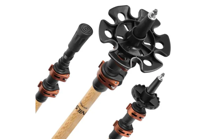 Hole sú vybavené ergonomickými rukoväťami, ktoré zaisťujú bezpečný a pohodlný úchop aj pri dlhých hodinách turistiky. Použitie troch materiálov zvyšuje pohodlie.