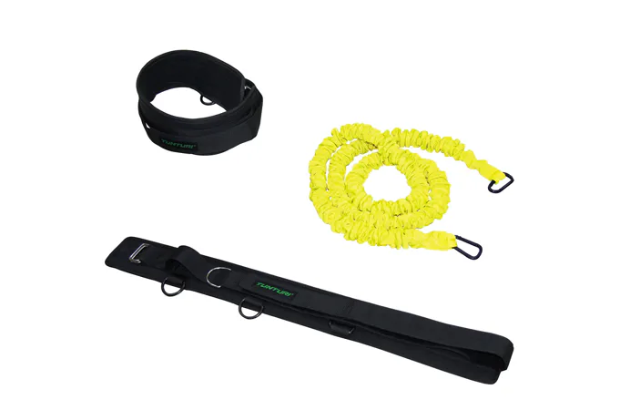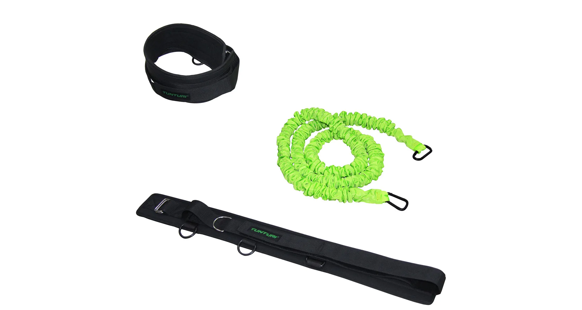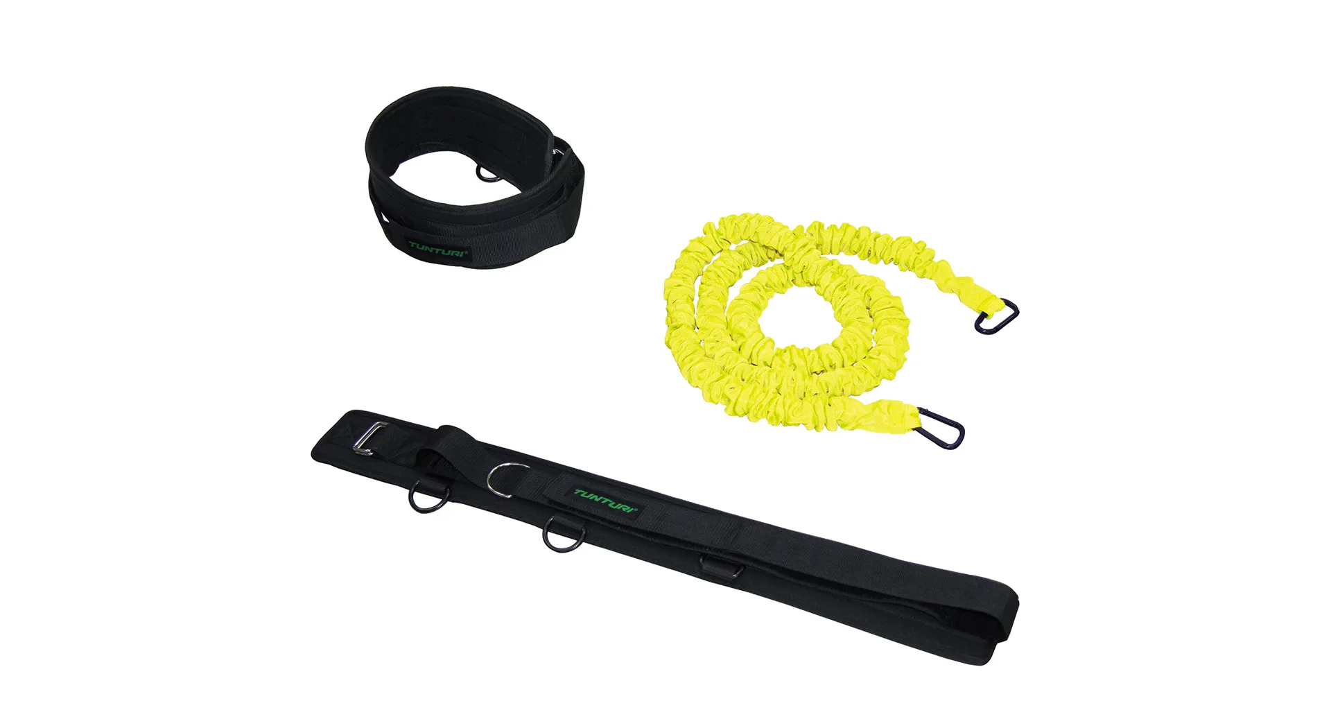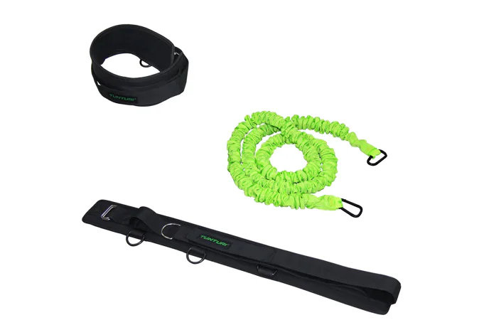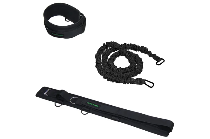 Tréning rýchlosti - sada TUNTURI je cvičebná pomôcka, ktorý sa používa na zlepšenie výbušnosti a rýchlosti v princípe odporu. Sada sa skladá z 2 bedrových pásov s ochrannými podložkami. Pásy sú nastaviteľné a vhodné pre všetky typy postáv.