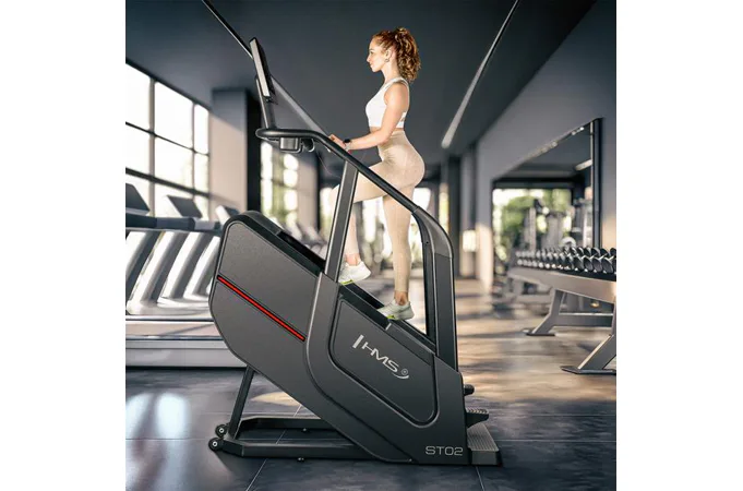Tréningové schody HMS ST02 určené pre intenzívne použitie v komerčných priestoroch. Zariadenie využíva najmodernejší elektromagnetický systém EMS (Electromagnetic System), ktorý zabezpečuje plynulý pohyb a presné riadenie intenzity tréningu.