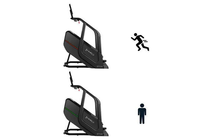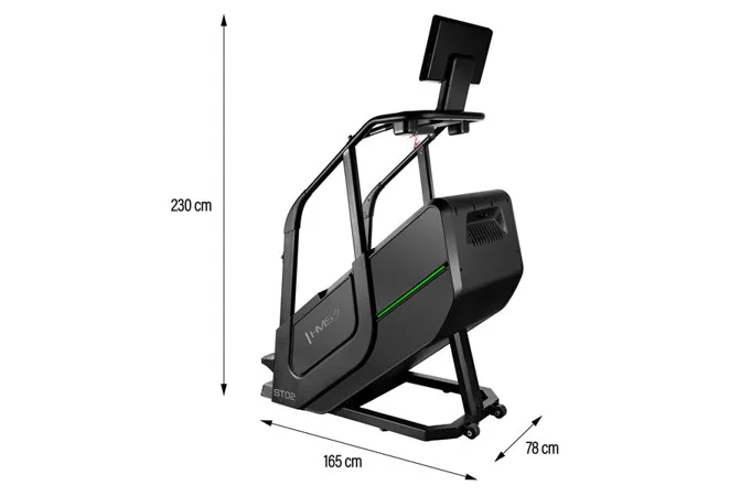 Schody ST02 sú vybavené funkciami merania rýchlosti, počtu krokov, vystúpenej výšky, času, spálených kalórií, tepovej frekvencie a telesného tuku, ktoré vám umožnia sledovať váš pokrok a prispôsobiť tréning vašim individuálnym cieľom. Bezdrôtová nabíjačka umožňuje pohodlné nabíjanie mobilných zariadení počas cvičenia. Intuitívny ovládací panel s tlačidlami na reguláciu rýchlosti a tlačidlami start/stop na madlách zabezpečuje jednoduché a rýchle ovládanie.