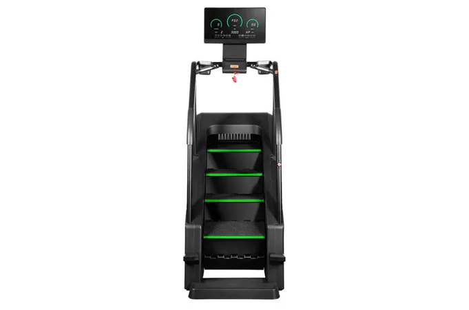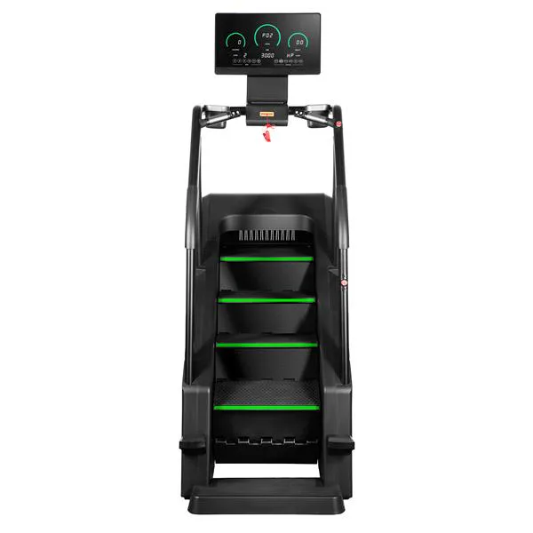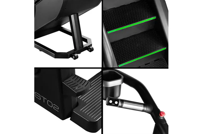 Stroj má robustnú konštrukciu, ktorá zaručuje stabilitu pri intenzívnom tréningu. Protišmykové schody pod uhlom 35 stupňov zabezpečujú pohodlie a bezpečnosť pri používaní. Samoblokovací systém schody automaticky zastaví, ak je zaťaženie menšie než 30 kg.
