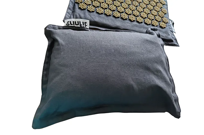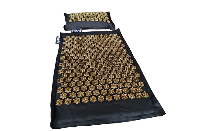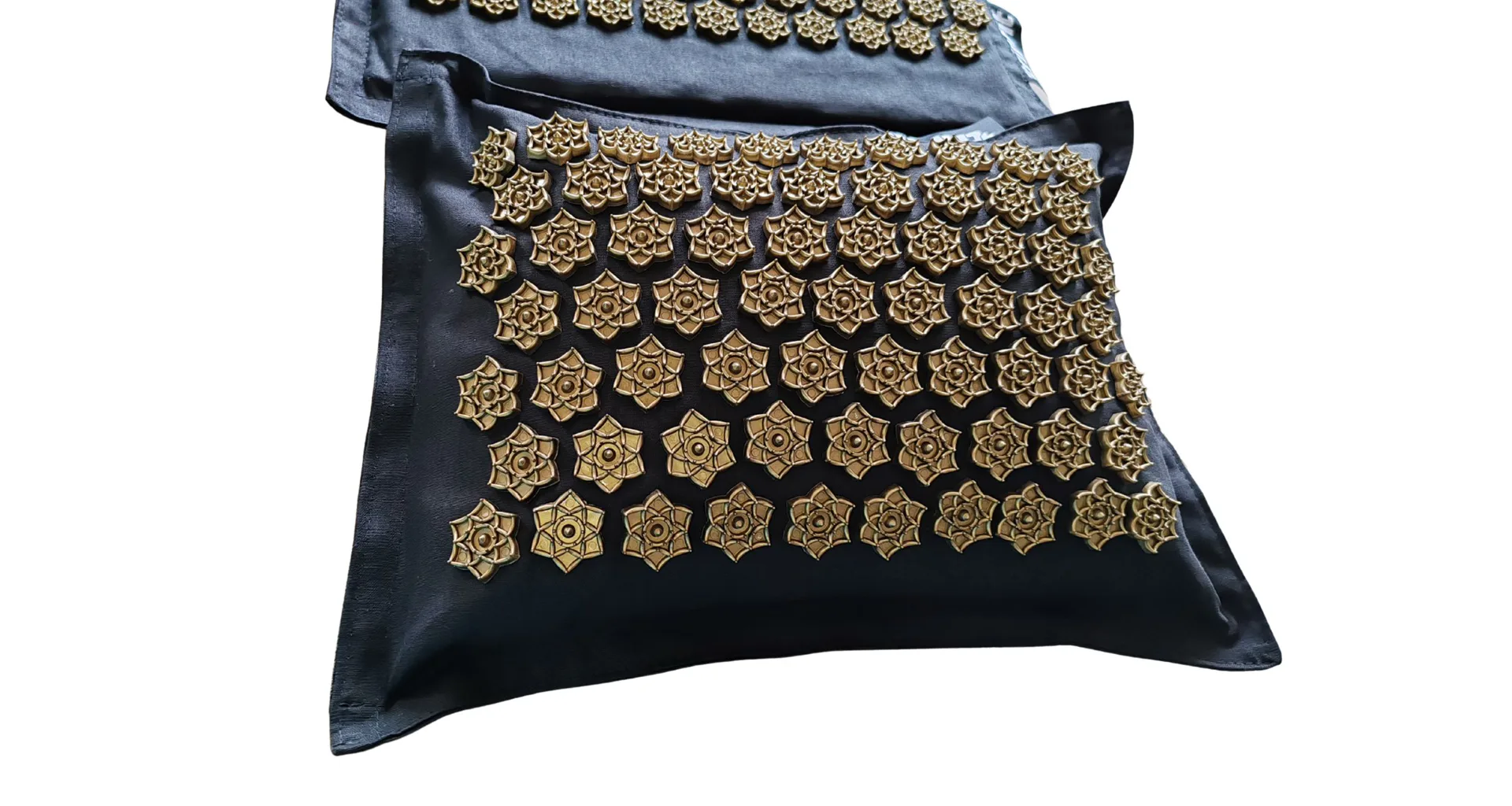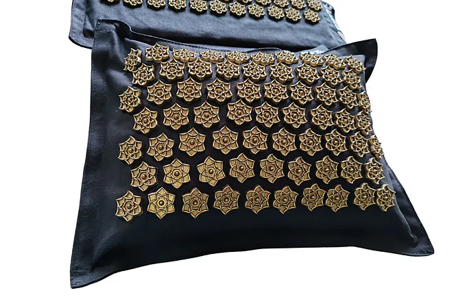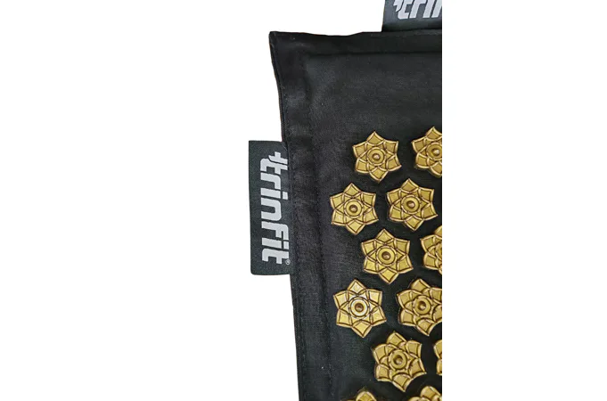Elegantný čierno-zlatý dizajn dodáva setu luxusný vzhľad - čierna podložka je osadená zlatými akupresúrnymi ružicami z odolného ABS plastu, ktoré cielene stimulujú tlakové body na tele. Pre ľahké prenášanie je súčasťou balenia aj praktická látková taška.