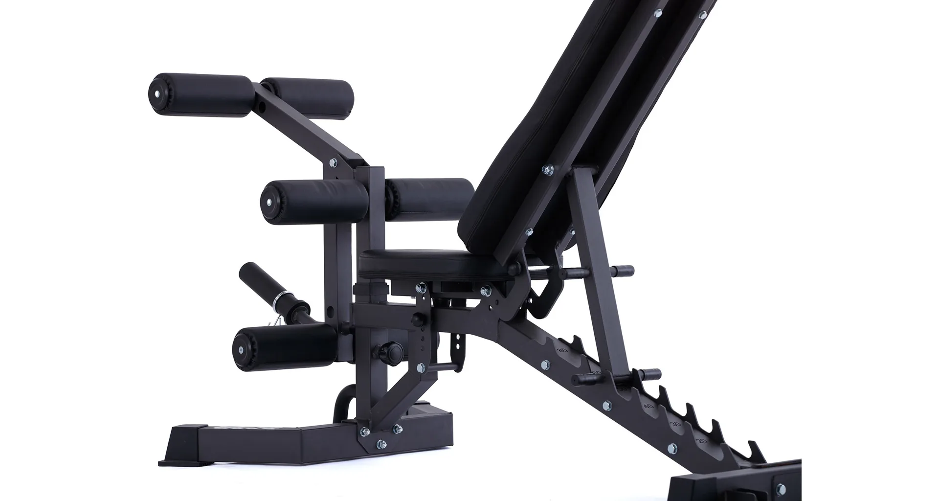 Súčasťou je kopač TRINFIT pre L5 Pro. S týmto adaptérom môžete odcvičiť predkopávanie na prednú časť stehien (kvadricepsy) a zakopávanie na zadnú časť stehien (hamstringy). Záťaž si nastavíte pomocou kotúčov na nakladací tŕň o priemere 25 alebo 50 mm. Pre maximálne pohodlie je kopač vybavený 6 penovými válcami, ktoré sú potiahnuté vysoko kvalitnou syntetickou kožou, odolnou proti potu a pretrhnutiu. Spodné penové válce sú nastaviteľné do 2 výšok, celý adaptér je potom nastaviteľný do 3 výšok.