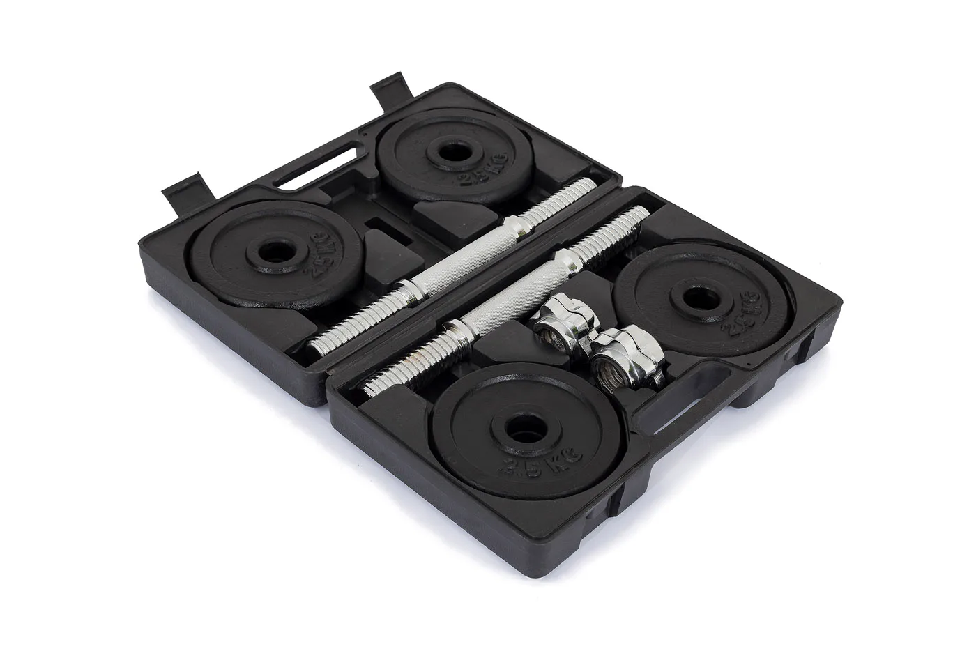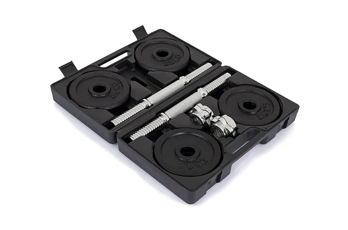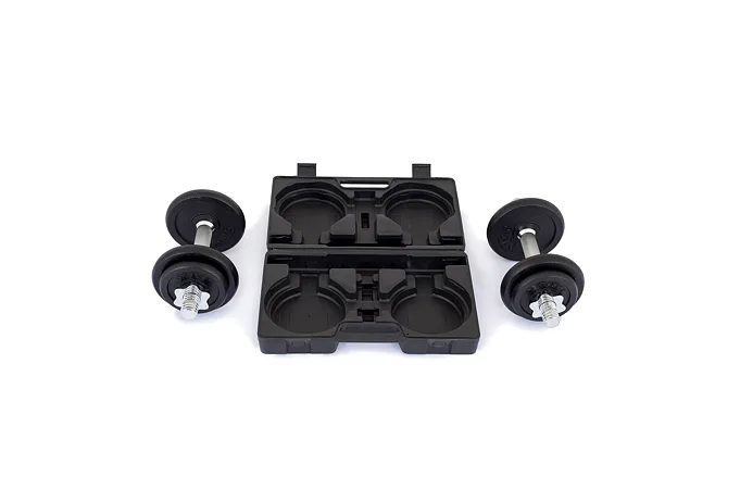 Sada dvoch kvalitných jednoručných činiek 2x10 kg TRINFIT v praktickom kufríku umožňuje jednoduchú manipuláciu s činkami. Je vyrobená z vysoko kvalitných materiálov. Každá činka umožňuje nastavenie ľubovolnej váhy v rozsahu cca 2,3 až 10 kg. Činka je vybavená závitovými uzávermi pre maximálny komfort a bezpečnosť.