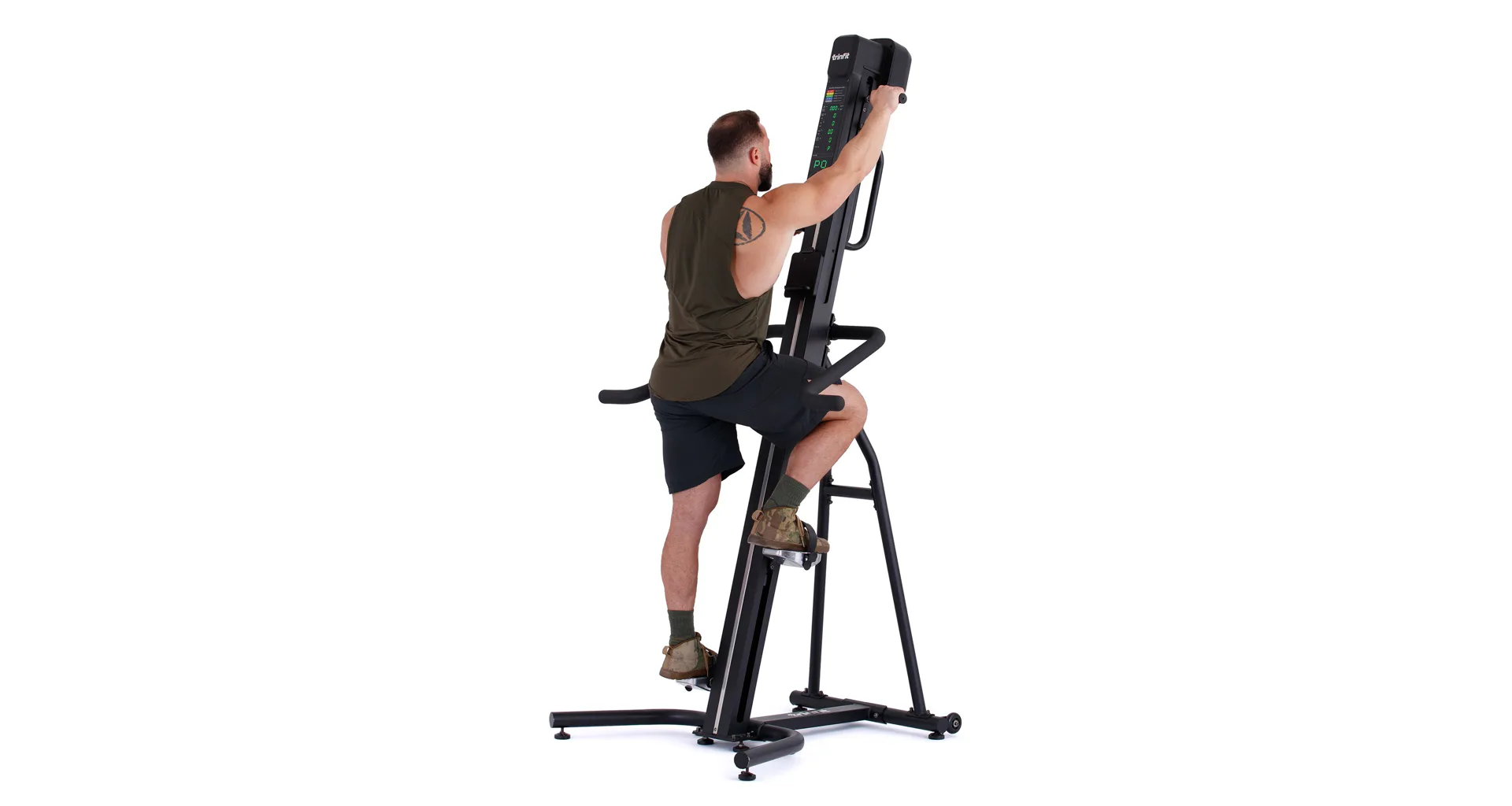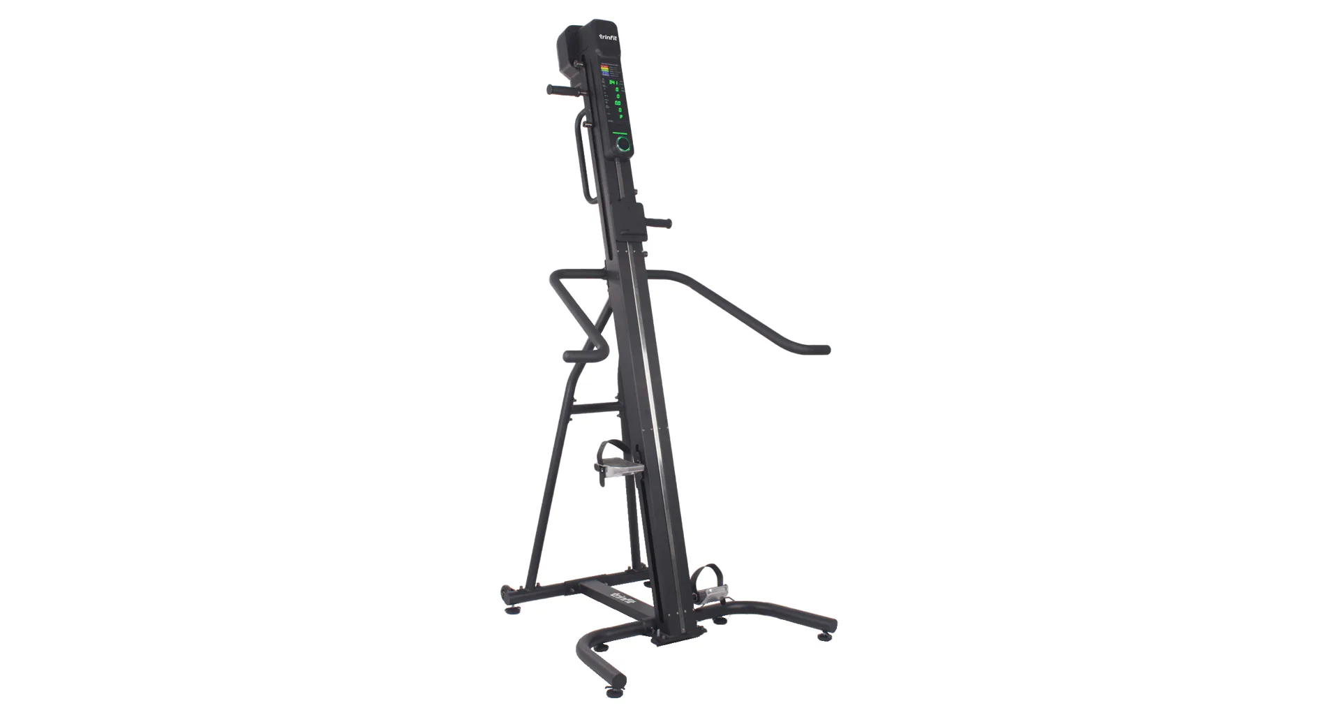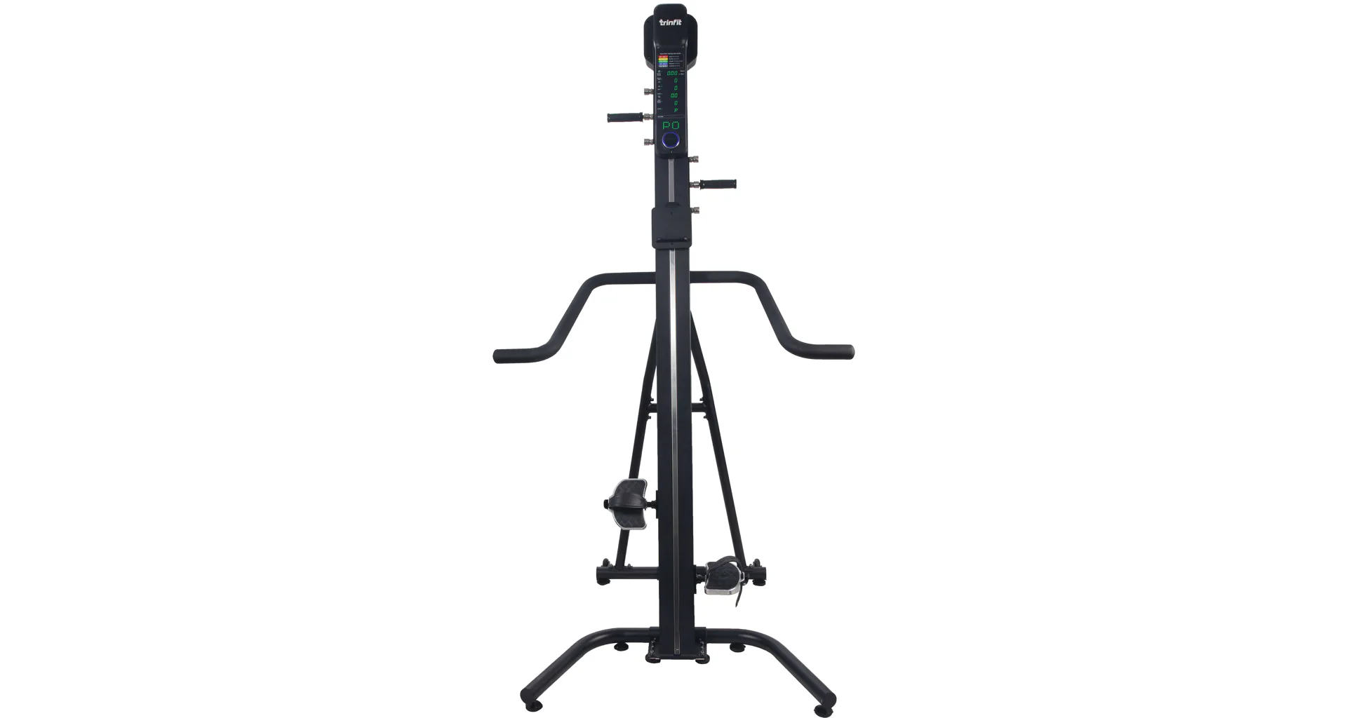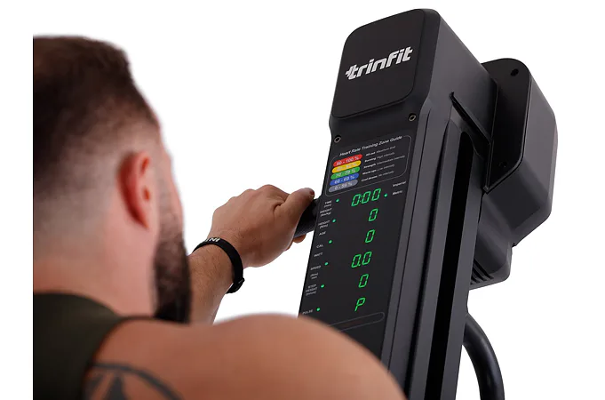 TRINFIT Climber Pro má stabilnú základňu a uspokojí užívateľov s každou telesnou výškou. Na prehľadnom podsvietenom LED a Matrix monitore si môžete kontrolovať údaje o tréningu a ovládať climber 16 úrovňami odporu.