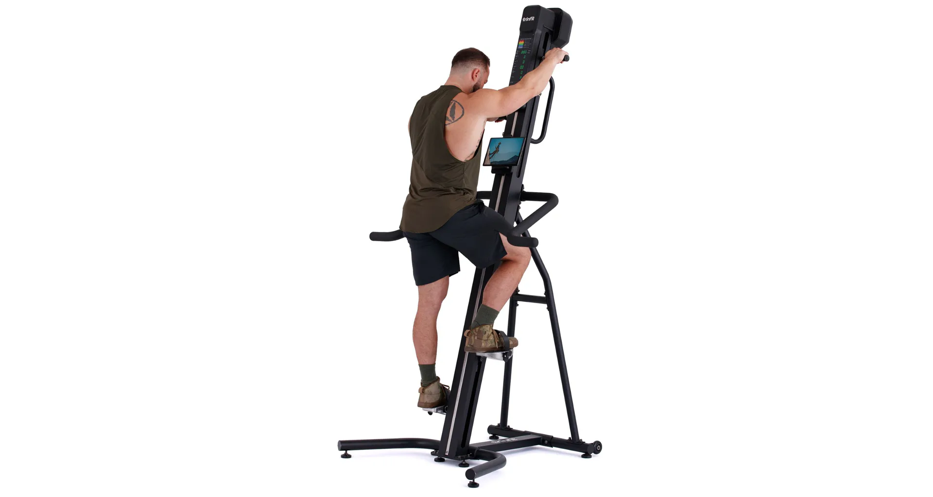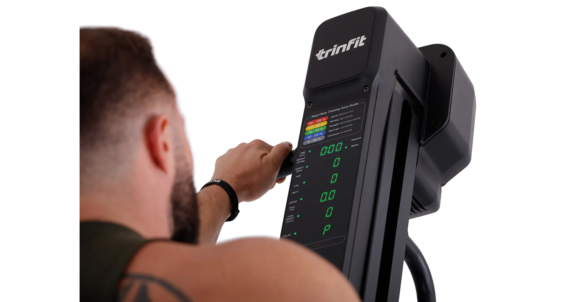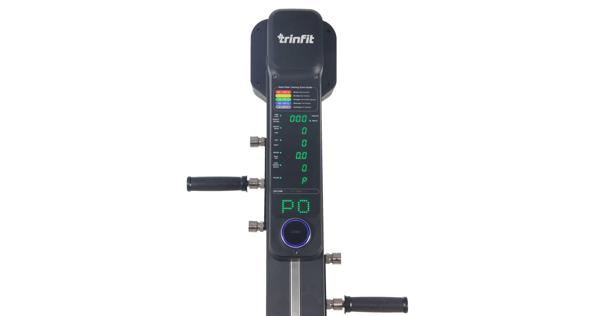 TRINFIT Climber Pro má stabilnú základňu a uspokojí užívateľov s každou telesnou výškou. Na prehľadnom podsvietenom LED a Matrix monitore si môžete kontrolovať údaje o tréningu a ovládať climber 16 úrovňami odporu.
