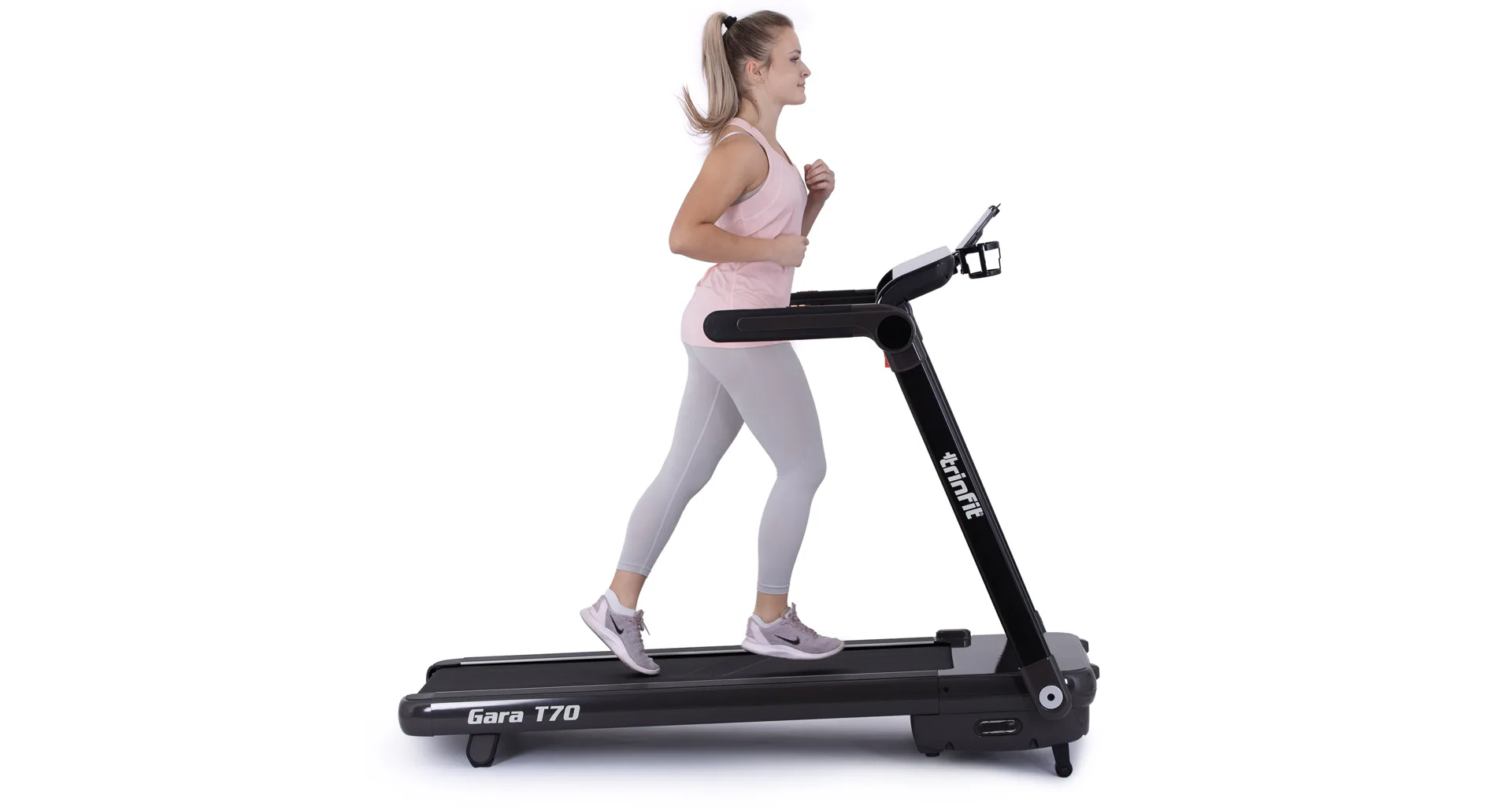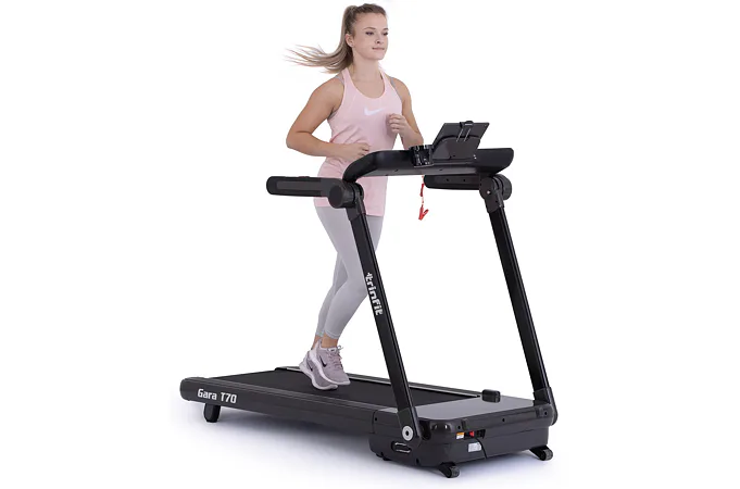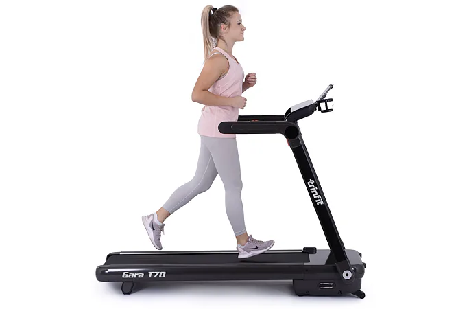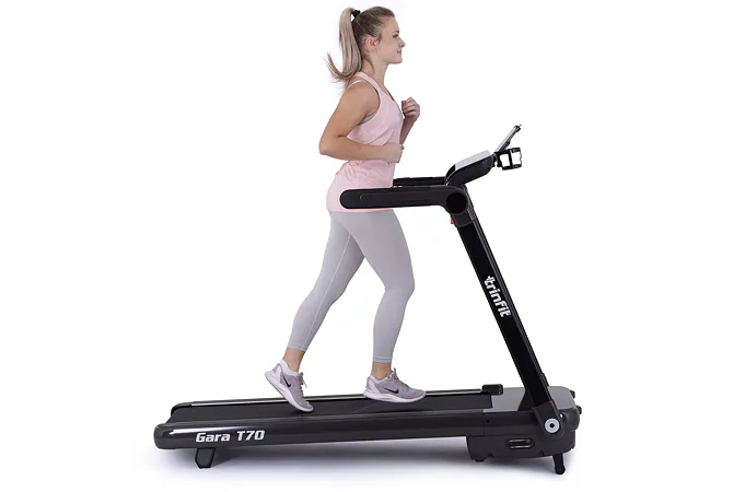 Pokud hledáte velmi skladný a kvalitní běžecký pás, který vám umožní příjemný zážitek z chůze, či běhu v pohodlí domova, pak se TRINFIT Gara T70 stane vaším ideálním společníkem pro pravidelný trénink. Nemusíte být nijak vázání na venkovním prostředí a ani na otevírací dobu fitcenter.