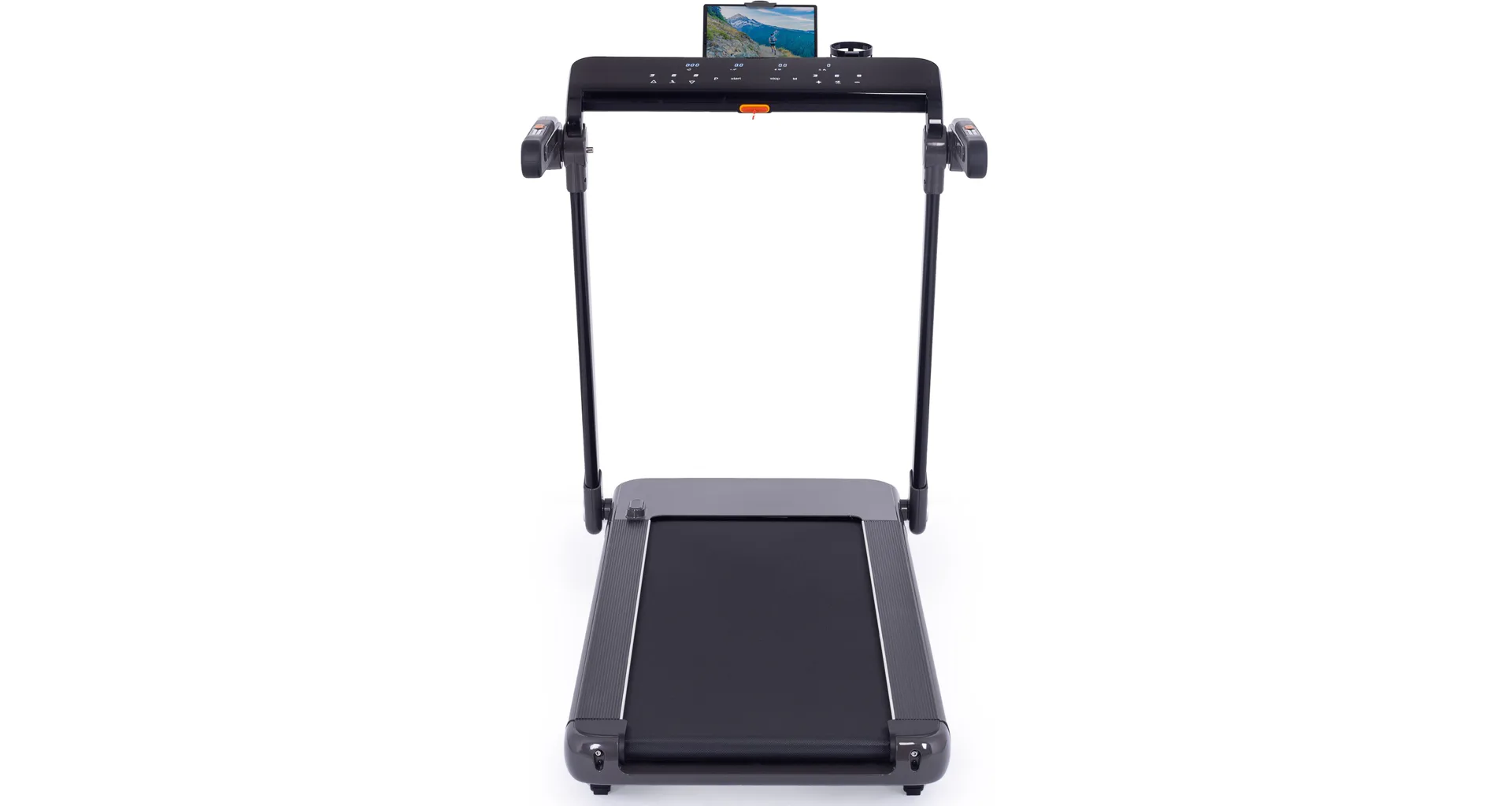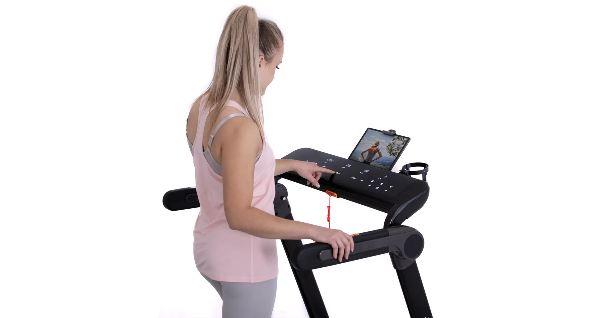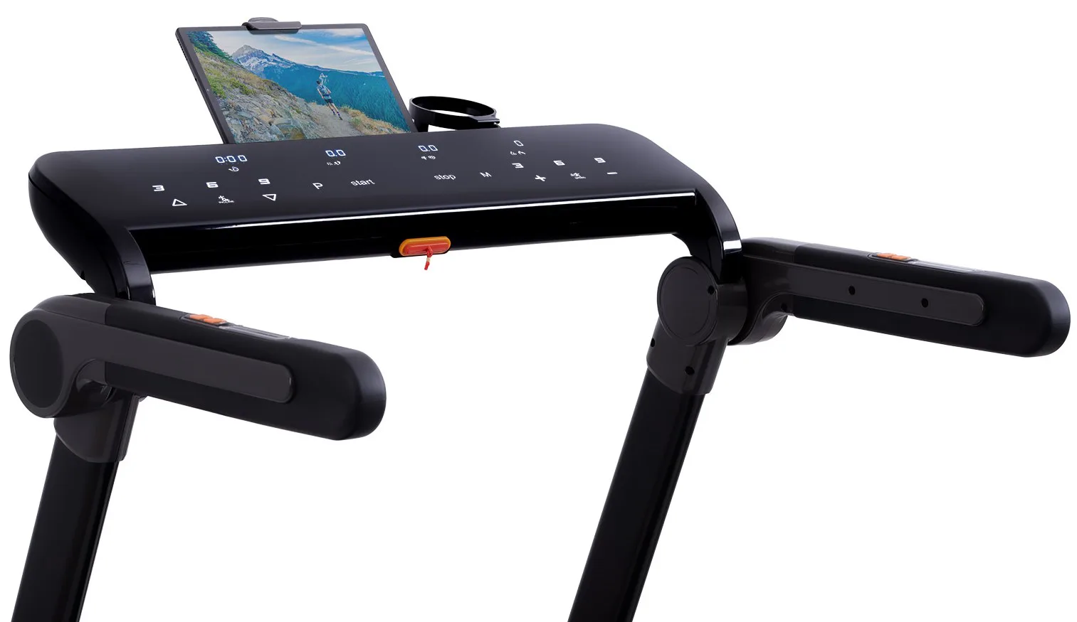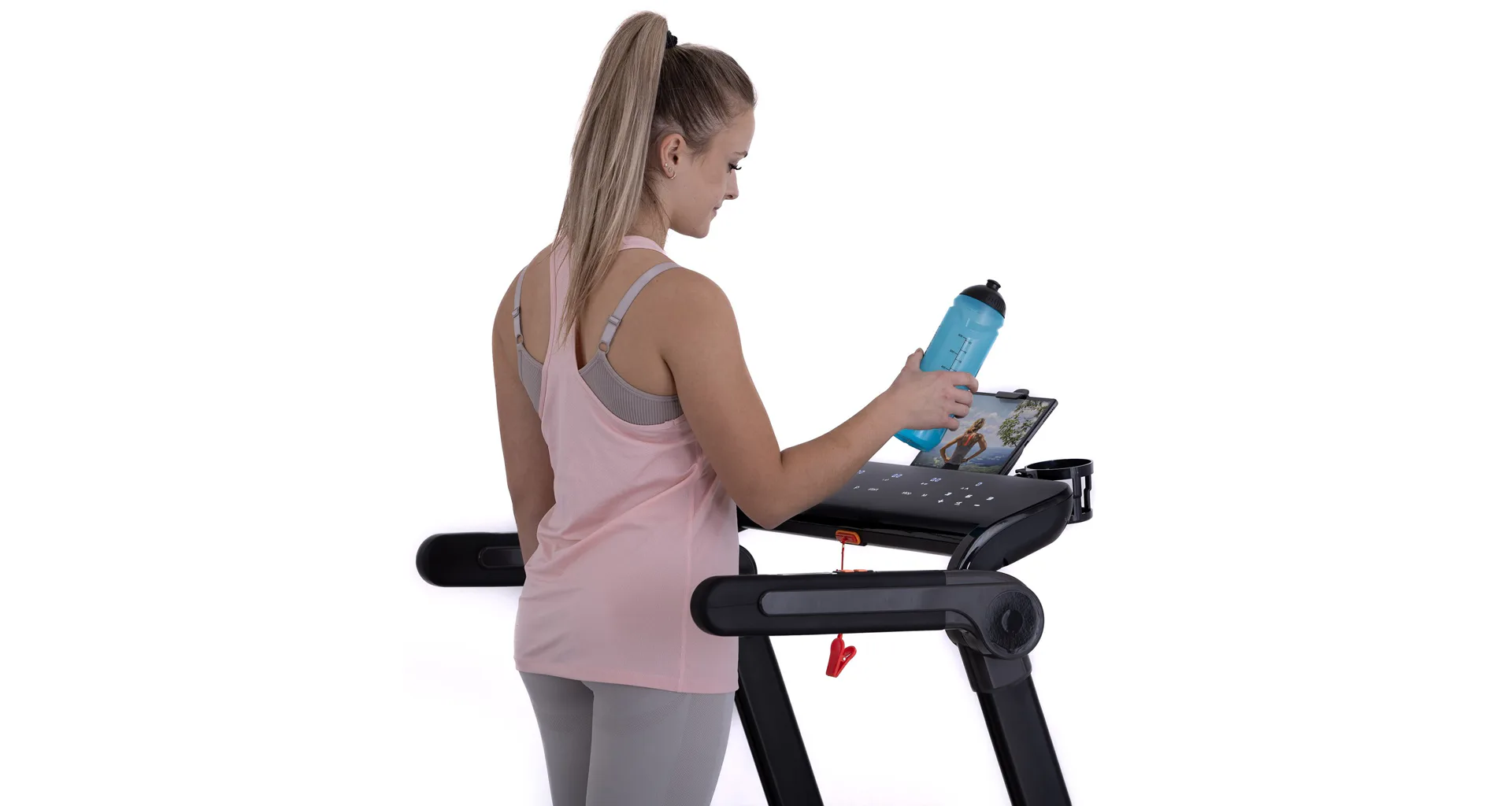 Díky funkci Bluetooth je možné běžecký pás spárovat s chytrými zařízeními pro poslech hudby ze zabudovaných reproduktorů a také můžete využívat tréninkové aplikace. Vyobrazený tablet není součástí dodávky.