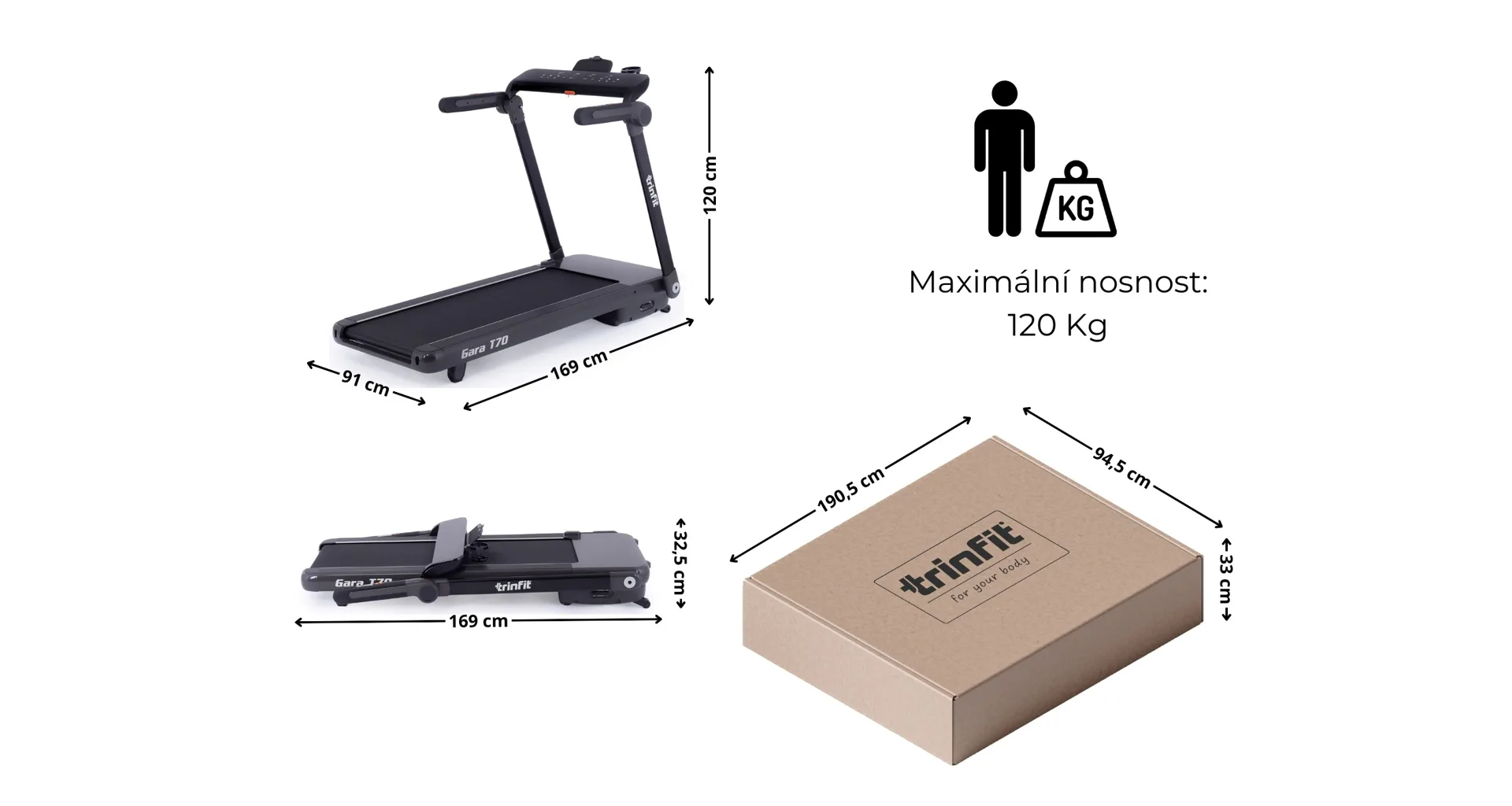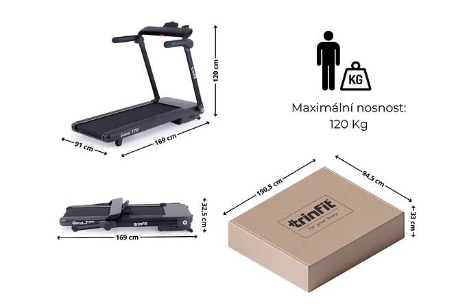 Nosnost běžeckého pásu TRINFIT GARA T70 je 120 kg.