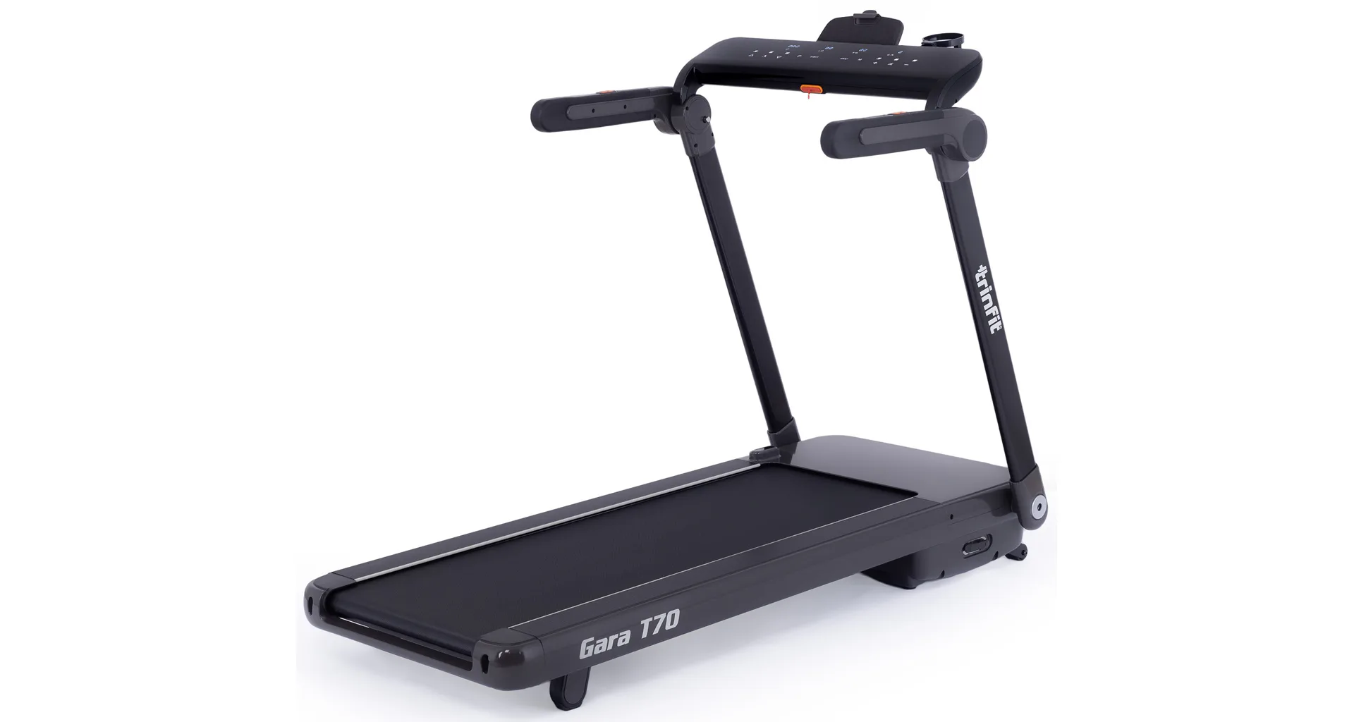 TRINFIT Gara T70 nabízí velký, přehledný a podsvětlený LED displej s bohatou programovou nabídkou pro efektivní a zábavný trénink. Umožní vám sledovat váš trénink v reálném čase pomocí dat monitorujících vaši rychlost, čas, vzdálenost, spálené kalorie, počet kroků a srdeční frekvenci.