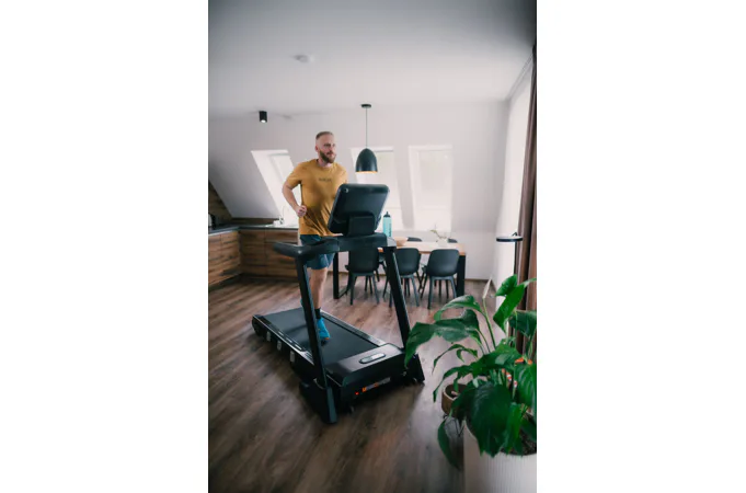 Nemusíte být nijak vázání na venkovním prostředí a ani na otevírací dobu fitcenter. Díky pečlivě vyvinuté konstrukci a kvalitnímu odpružení běžecké plochy "Ortho-3D-Plus" minimalizuje zatížení kloubů a vazů a vy si můžete užít příjemný a přirozený pocit chůze, či běhu. Pás je vybaven prostornou běžeckou plochou o rozměrech 51 x 151 cm, což zajišťuje pohodlný a bezpečný prostor pro běh a opatřen systémem odhlučnění "VibroSilence", omezujícím vibrace a přenos došlapů do podlahy. To zaručuje znatelně tišší chod oproti jiným modelům této cenové kategorie.