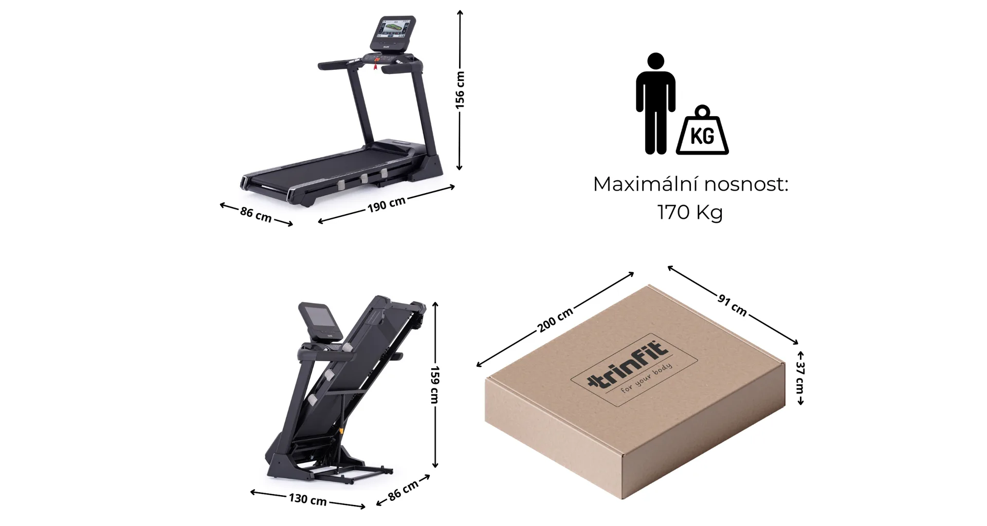 Díky robustnímu a propracovanému provedení pásu, je nosnost až 170 kg!