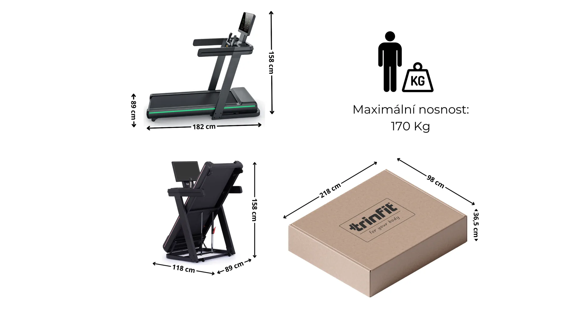 Díky robustnímu a propracovanému provedení pásu, je nosnost až 170 kg!