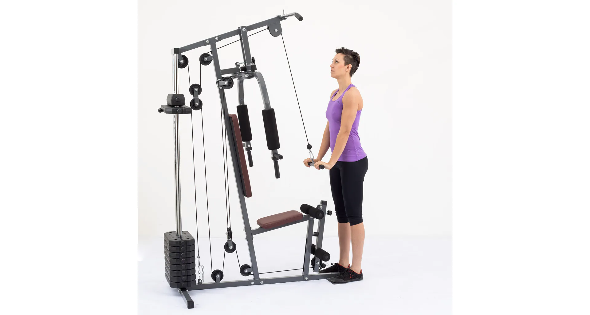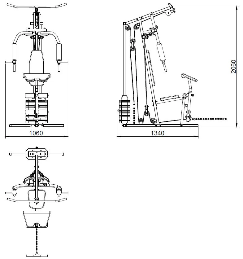 Multifunkčné prevedenie stroja dovoľuje precvičiť väčšinu svalových skupín, veža disponuje jednoducho ovládateľným nastavením záťaže. Súčasťou veže je tréningový návod s obrázkovými prílohami pre základné cviky.