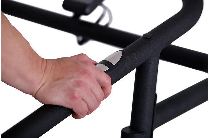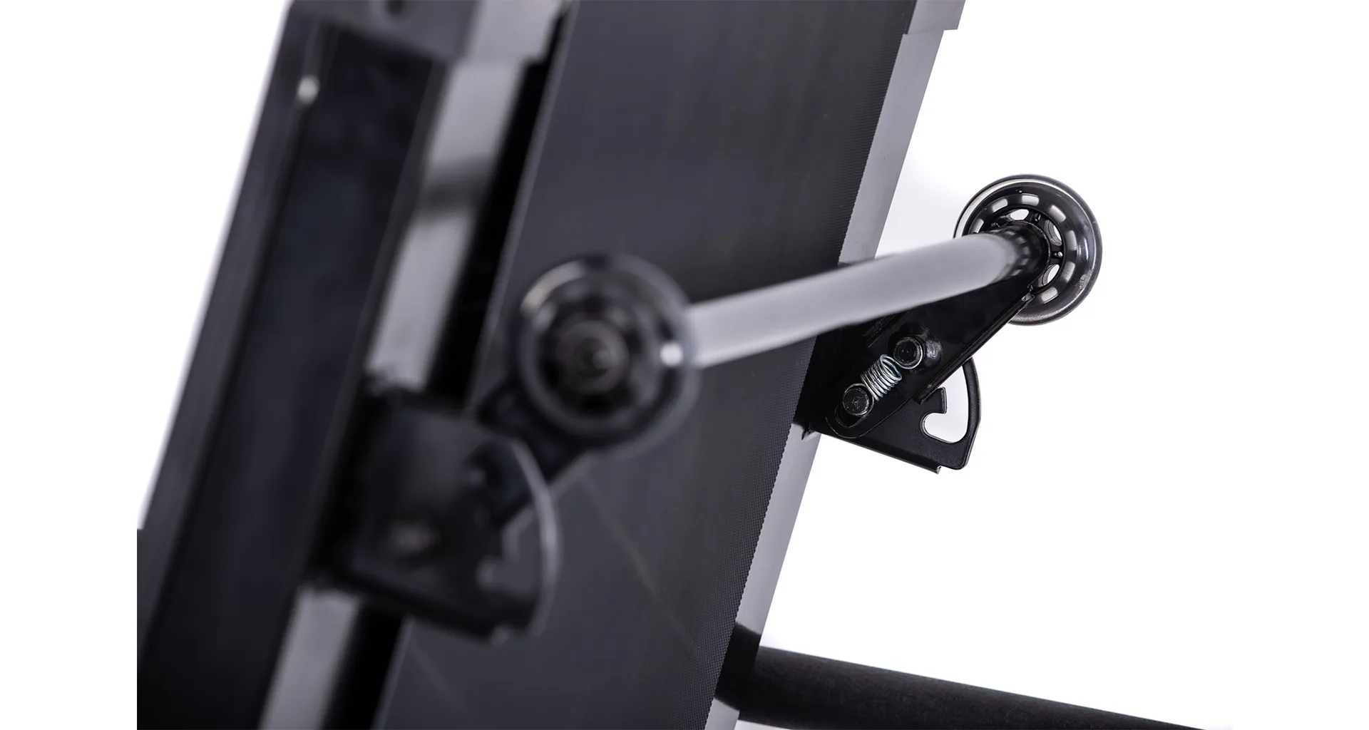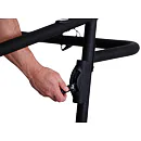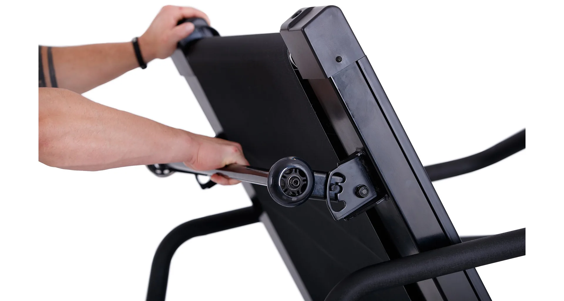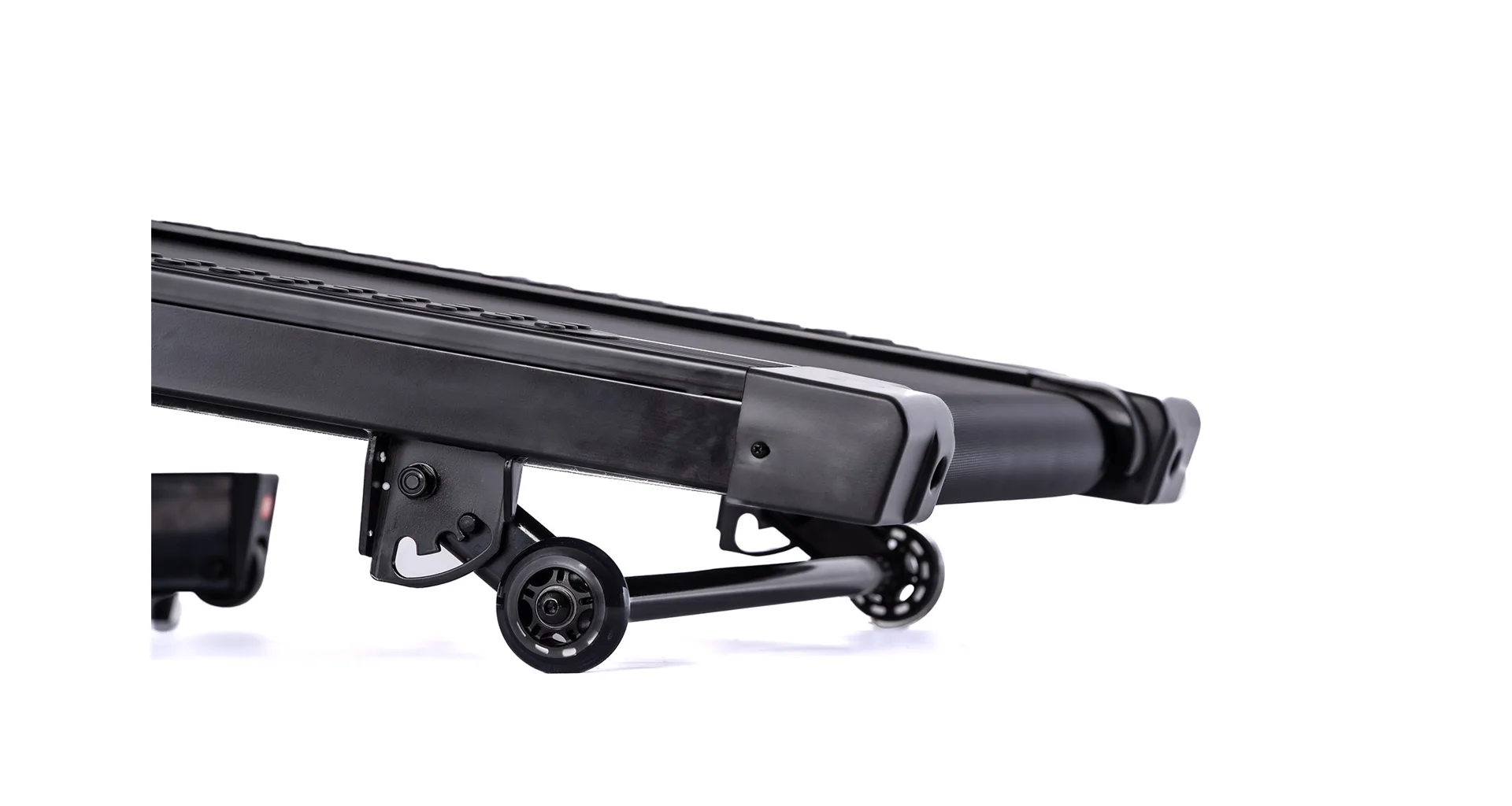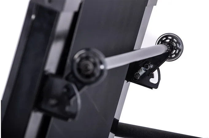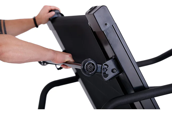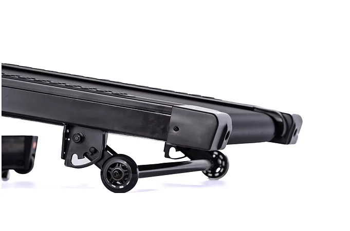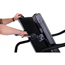 Pokud běžecký pás zrovna nepoužíváte, můžete jej jednoduše sklopit a ušetřit tak až 60% místa. Manipulaci s pásem usnadňují i transportní kolečka.