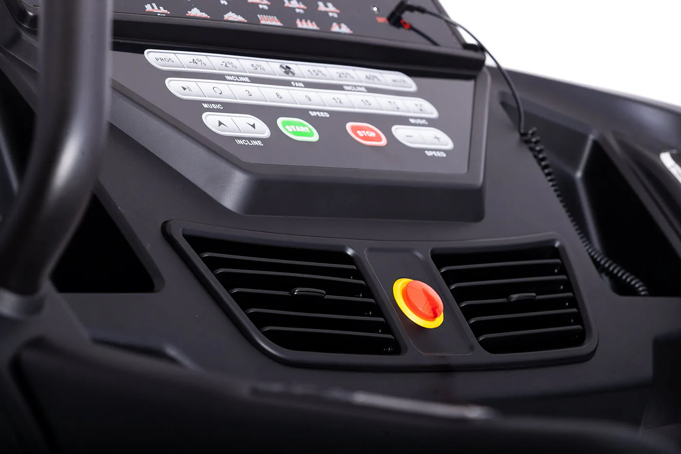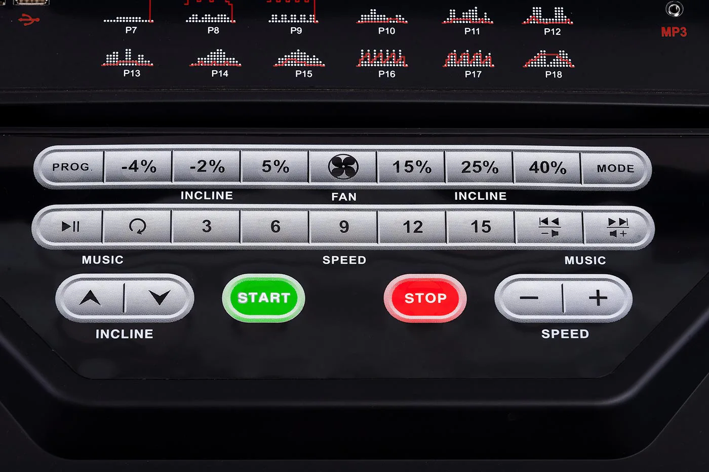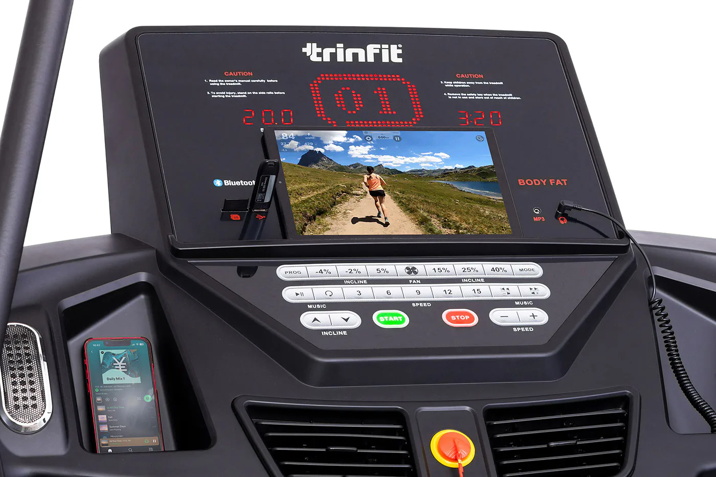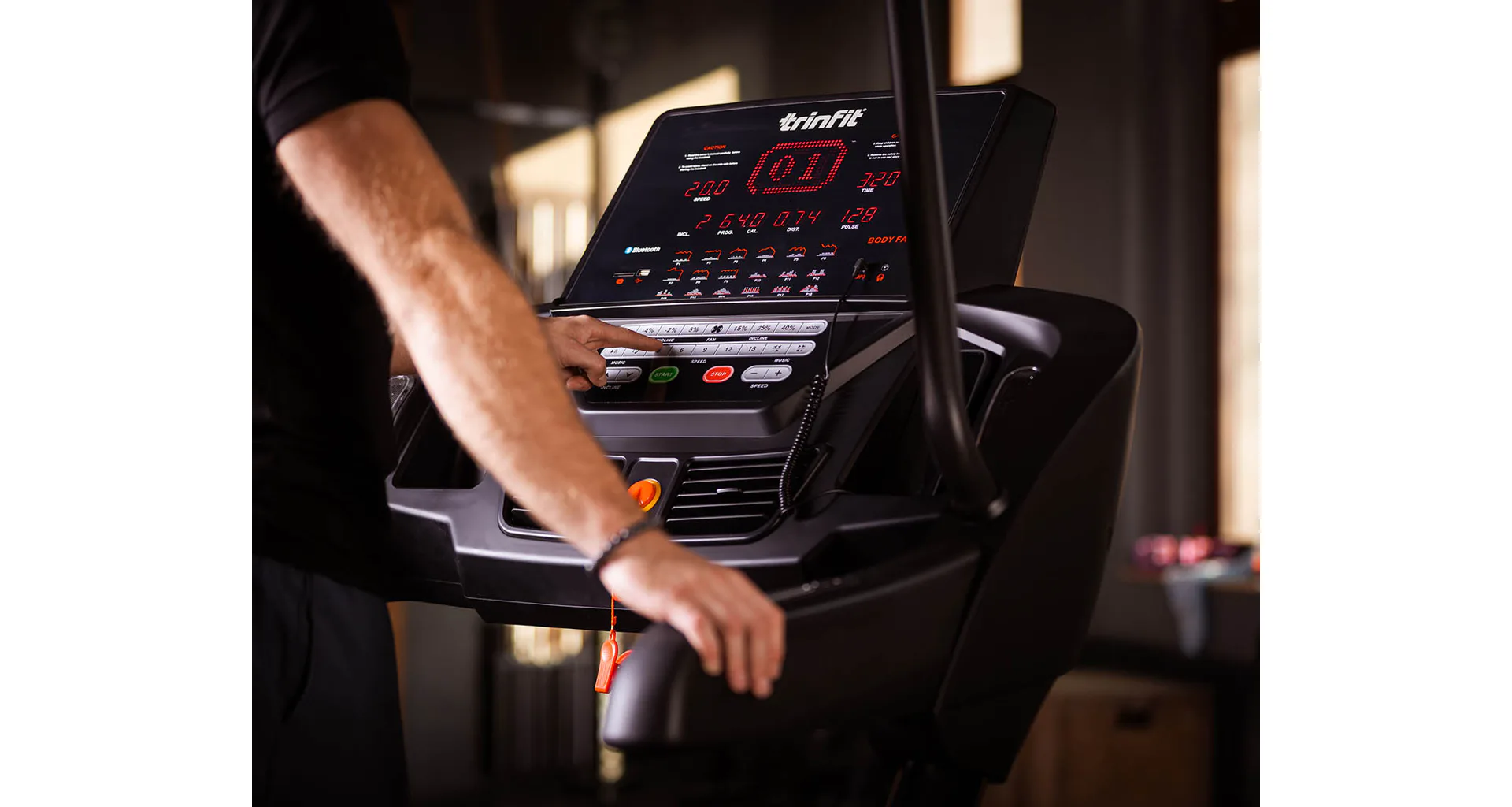 TRINFIT Incline T15 Pro nabízí velký, přehledný a podsvětlený LED displej s bohatou programovou nabídkou pro efektivní a zábavný trénink. Umožní vám sledovat váš trénink v reálném čase pomocí dat monitorujících vaši rychlost, čas, vzdálenost, spálené kalorie a srdeční frekvenci. Rychlost a sklon běhu si můžete nastavovat během tréninku ručně tlačítky, případně si můžete si vybrat některý z 18 přednastavených tréninkových programů, nebo si vytvořit 3 vlastní programy na míru podle vašich představ.