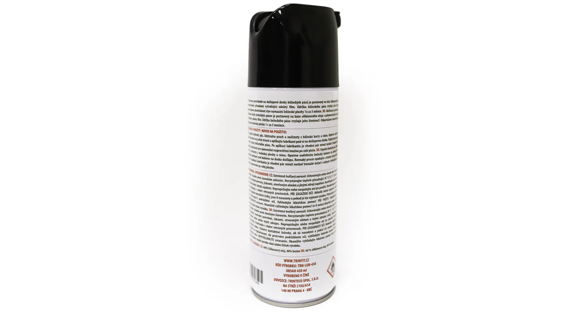 Lubricant pre bežecké pásy TRINFIT LUB450 je mazací prostriedok prvotriednej kvality. Vďaka jeho výborným mazacím vlastnostiam je vhodný ako na mazanie domácich pásov, tak aj pre extrémne zaťažované bežecké pásy v kluboch, či športových centrách.