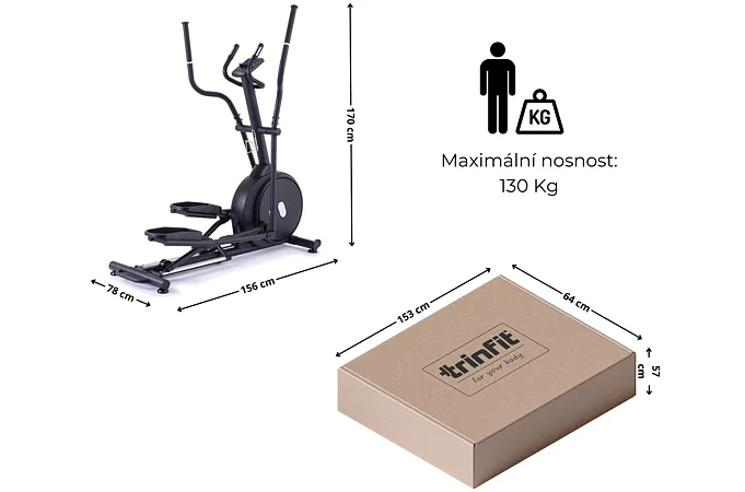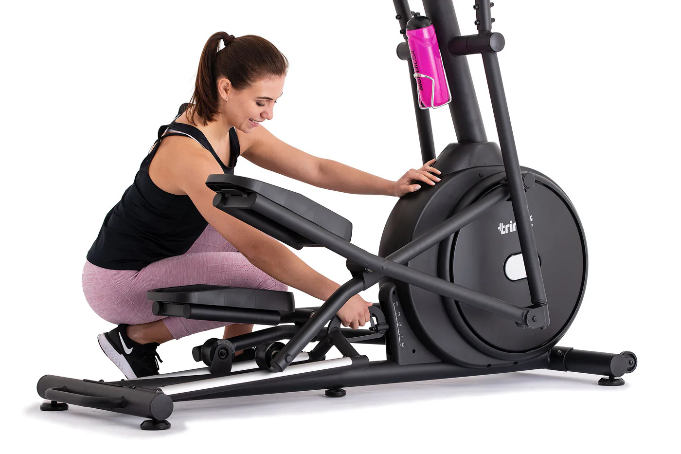 TRINFIT Monta C450i je vysoce kvalitní eliptický trenažér určený pro domácí použití, vybavený předním setrvačníkem, elektronickou regulací zátěže, a širokou nabídkou programů. Díky své robustní konstrukci s vysokou nosností a tichým chodem nabízí pohodlný trénink kdykoli, bez ohledu na počasí nebo otevírací dobu fitness center.