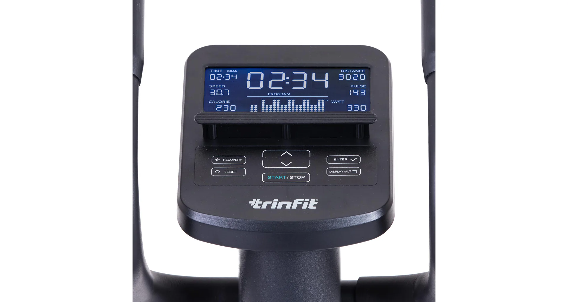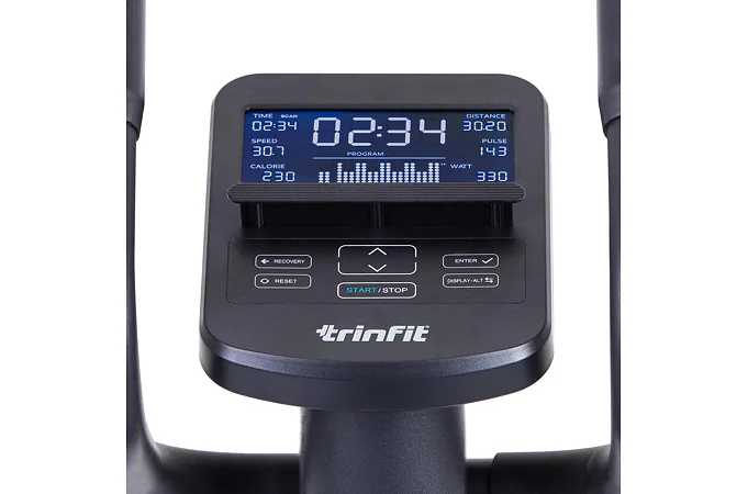 Pro maximální efektivitu cvičení nabízí TRINFIT Monta C450i různé programy zaměřené na měření a regulaci tepové frekvence, včetně HRC programů a funkce Body Fat. LCD displej přehledně zobrazuje klíčové tréninkové údaje, jako jsou čas, vzdálenost, rychlost, spálené kalorie a srdeční frekvence.