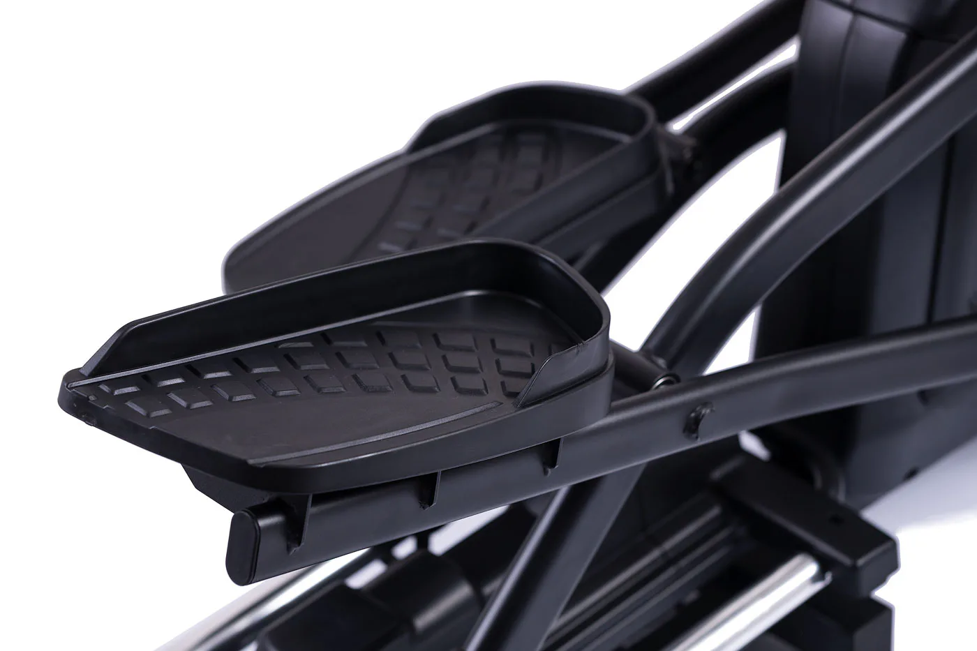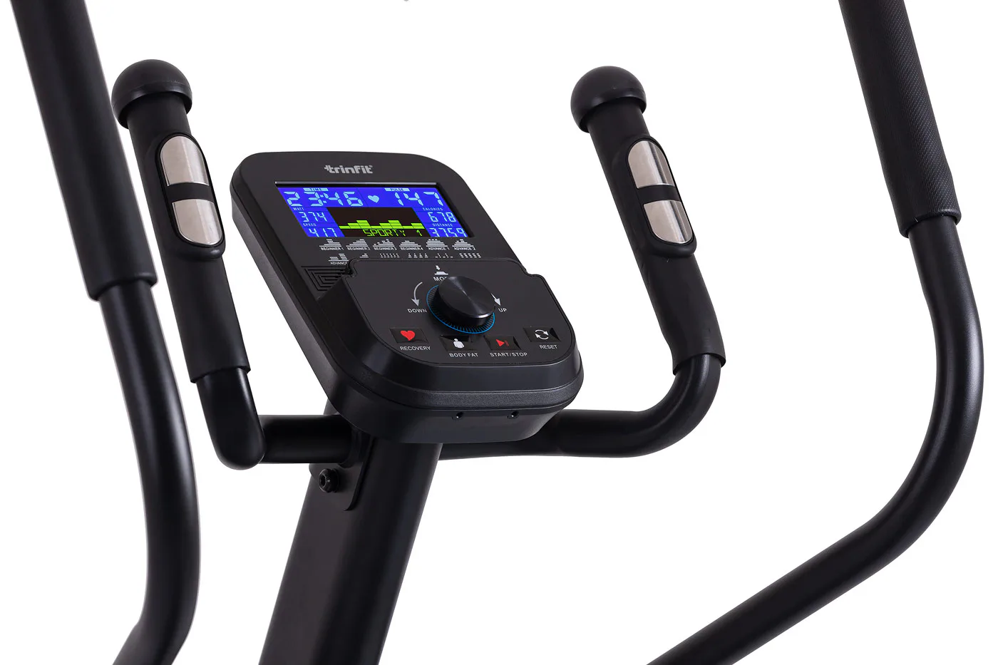 TRINFIT Monta C550i je vysoce kvalitní eliptický trenažér určený pro domácí použití, vybavený předním setrvačníkem, elektronickou regulací zátěže, a širokou nabídkou programů. Díky své robustní konstrukci s vysokou nosností a tichým chodem nabízí pohodlný trénink kdykoli, bez ohledu na počasí nebo otevírací dobu fitness center.