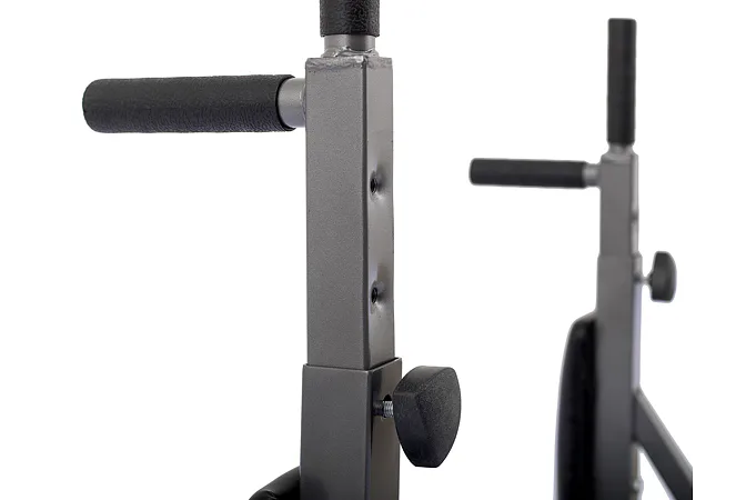 Nástenné bradlá s prednožovaním TRINFIT Multi Dip sú univerzálnou cvičebnou pomôckou k cvičeniu s vlastnou váhou. Na rozdiel od lacnejšieho modelu TRINFIT Dip Bars má táto dražšia varianta možnosť nastavenia vzdialenosti vertikálnej rukoväte od zadného čalúnenia do 3 polôh, je teda jednoducho prispôsobiteľná dĺžke ruky a požiadavkam cvičiaceho. Druhou výhodou tohto modelu je chrbtová opierka stabilizujúca vašu polohu pri cvičení. Bradlá s prednožovaním TRINFIT Multi Dip umožňujú precvičenie brušných svalov a svalstva hornej časti tela. Zdvíhanie nôh v závese a kľuky na bradlách patria k základným cvikom k efektívnemu a cielenému cvičeniu na hrudník, ramená, tricepsy a brucho. Odolné zosilnené čalúnenie umožňuje komfortné cvičenie aj ťažším osobám.