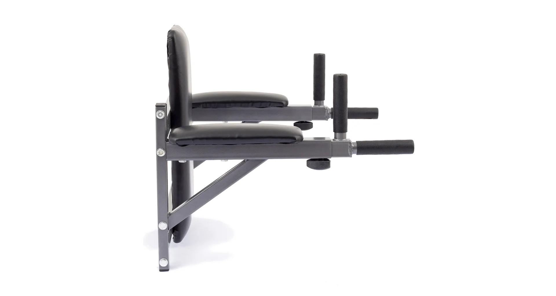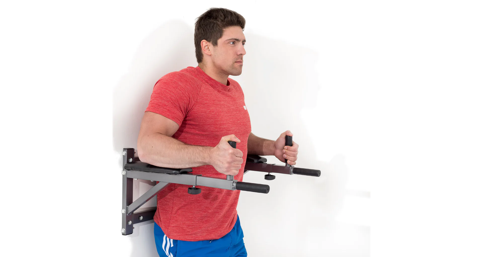 Oceľová konštrukcia z profilov 50 x 50 x 1,5 mm a špeciálna priečna podpera vodorovného nosníku umožňuje cvičenie s dodatočnou záťažou a poskytuje bradlám nosnosť až 150 kg. Bradlá sú určené k montáži na stenu, kotviace šróby so špeciálnou oceľovou hmoždinkou zaručujú dostatočnú pevnosť sú súčasťou dodávky. Zosilnené čalúnenie s hrúbkou 50 mm umožňuje pohodlné cvičenie aj ťažším osobám.