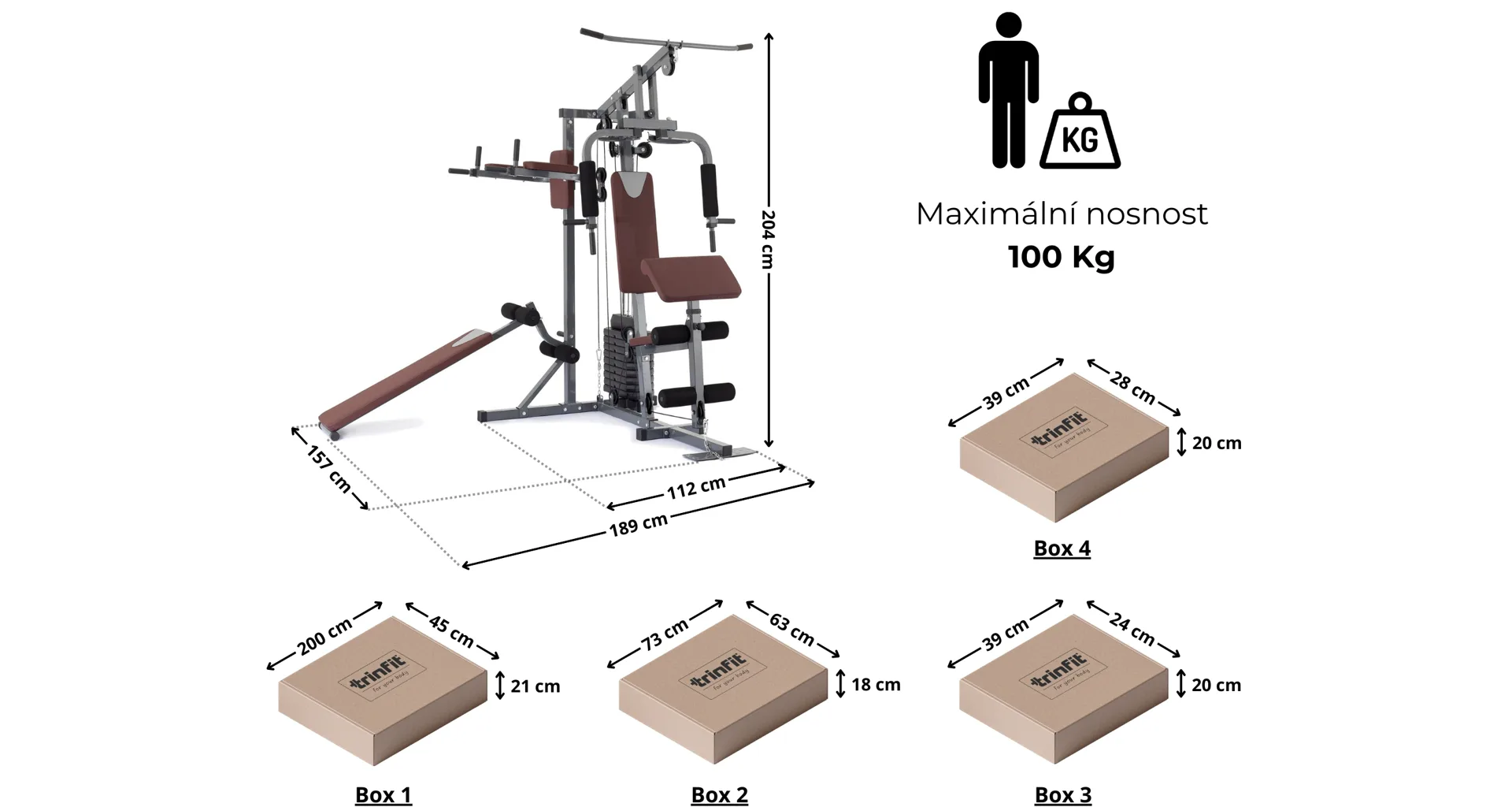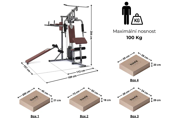 Posilňovacia veža TRINFIT Multi Gym MX4 je multifunkčné zariadenie, ktoré vám na veľmi malom priestore umožní precvičenie viac než 45 rôznych cvikov. Na stroji môžu súčasne cvičiť 2 osoby, je určená k efektívnemu precvičeniu celého tela. Veža je vhodná pre uživateľov, ktorí si chcú na relatívne malom priestore zacvičiť, vytvarovať postavu a nabrať svalovú hmotu. K efektívnemu precvičovaniu brušných svalov je posilňovacia veža TRINFIT Multi Gym MX4 z boku doplnená o bradlá s prednožovaním a šikmou lavicou s možnosťou polohovania. Závažie je riešené pomocou klasických tehličiek, vďaka sprevodovaniu umožňuje na vybraných adaptéroch cvičenie s váhou až 60 kg (viz indexy prenosu sily nižšie). Nastavenie požadovanej váhy je jednoduché, rýchle a bezpečné aj pre začiatočníkov.
