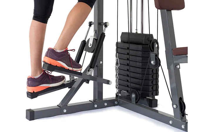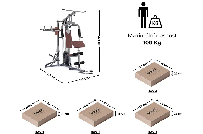Posilňovacia veža TRINFIT Multi Gym MX5 je multifunkčné zariadenie, ktoré vám na veľmi malom priestore umožní precvičovať viac ako 45 rôznych cvikov. Na stroji môžu súčasne cvičiť 2 osoby, je určená pre efektívne precvičenie celého tela. Veža je vhodná pre uživateľov, ktorí si chcú na relatívne malom priestore zacvičiť, vytvarovať postavu a nabrať svalovú hmotu. Pre efektívne precvičenie brušných svalov je posilňovacia veža TRINFIT Multi Gym MX5 na boku doplnená bradlami s prednožovaním. Veľkou výhodou veže je špeciálny stepper s veľkým rozsahom záťaže a možnosťou nastavenia odporu šľapania v 3 stupňoch, ideálny pre ženy. Závažie je riešené pomocou klasických tehličiek, vďaka sprevodovaniu umožňuje na vybraných adaptéroch cvičenie s váhou až 60 kg (viz. indexy prenosu sily nižšie). Nastavenie požadovanej váhy je jednoduché, rýchle a bezpečné aj pre začiatočníkov.