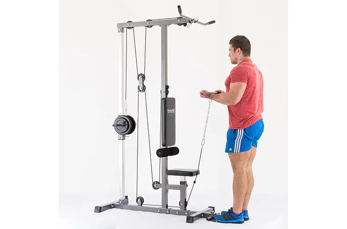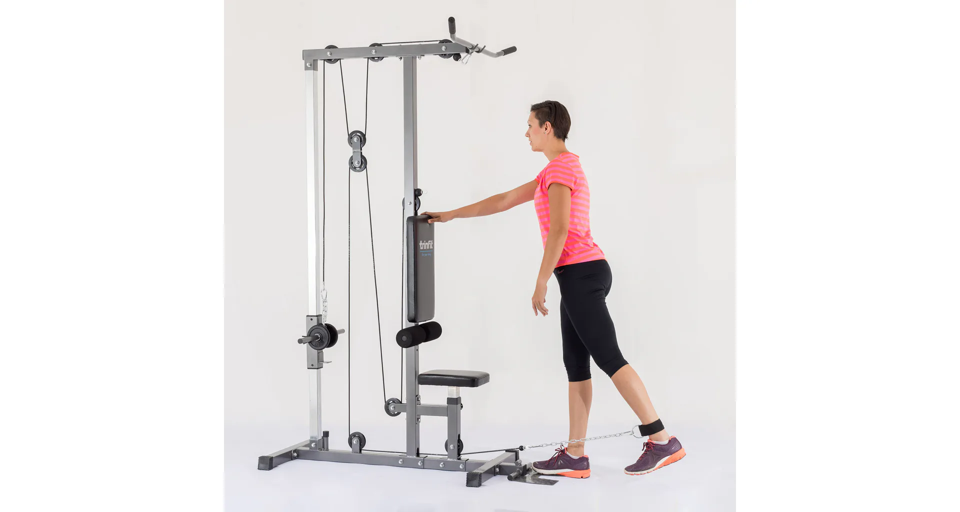 Kladková veža TRINFIT Multi Lat umožňuje precvičovanie desiatok cvikov svalov celého tela, je ideálnym doplnkom posilňovacích lavíc. Veža je vybavená hornou kladkou, spodnou kladkou a špeciálnou tricepsovou kladkou uprostred stroja, možnosti veže sú rozšírené o ďalšie cviky vrátane možnosti cvičenia na brušné svaly. Dômyselná kombinácia 8-mych kladiek s ložiskami umožňuje na relatívne malom priestore vykonávať cviky na posilnenie chrbtového svalstva, svalstva pŕs, nôh, ale aj cviky na posilňovanie bicepsov, tricepsov a brucha. Spodná kladka slúži aj k tzv. veslovaniu, pomocou ktorého je posilňovaná komplexne väčšina tela, je na nej možné cvičiť aj desiatky iných cvikov.