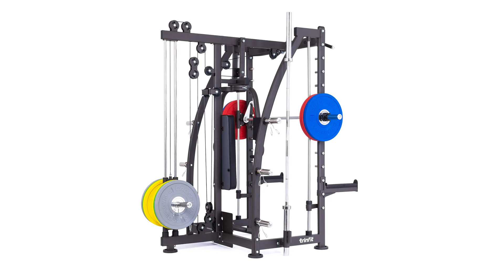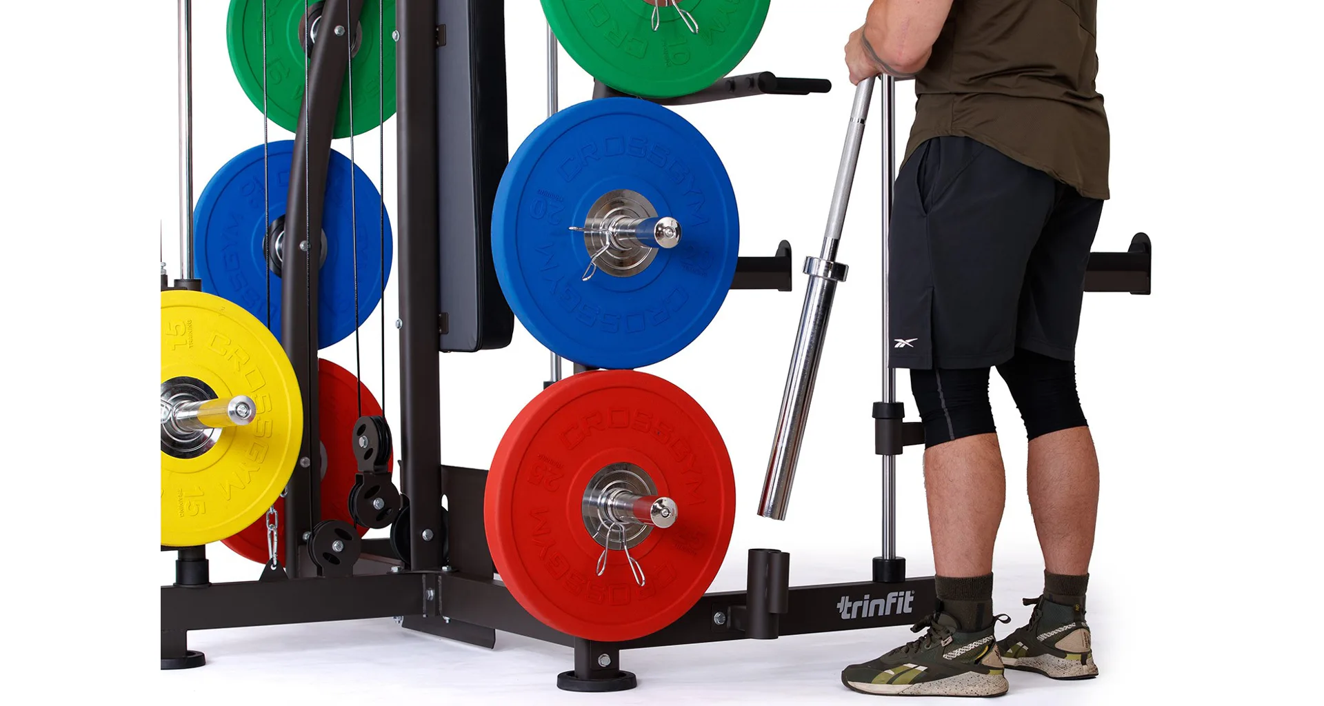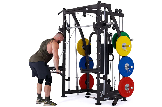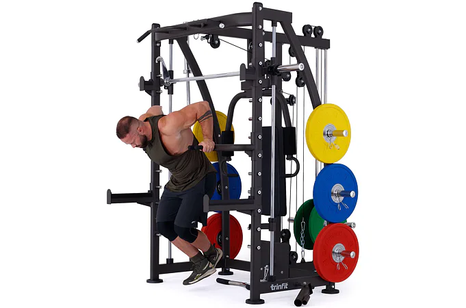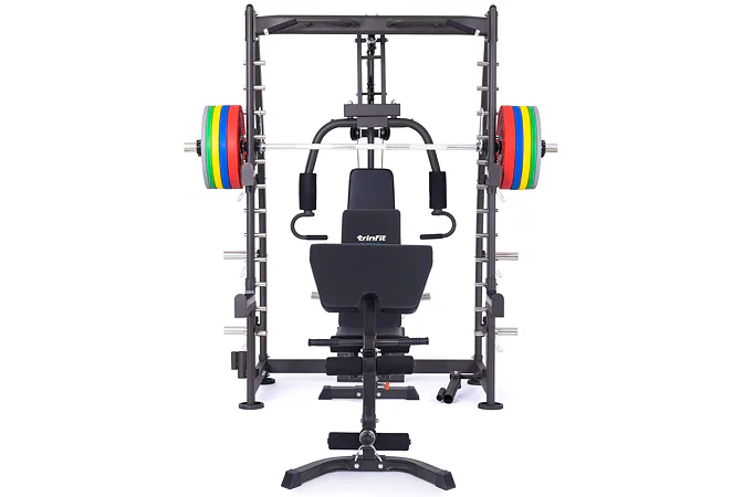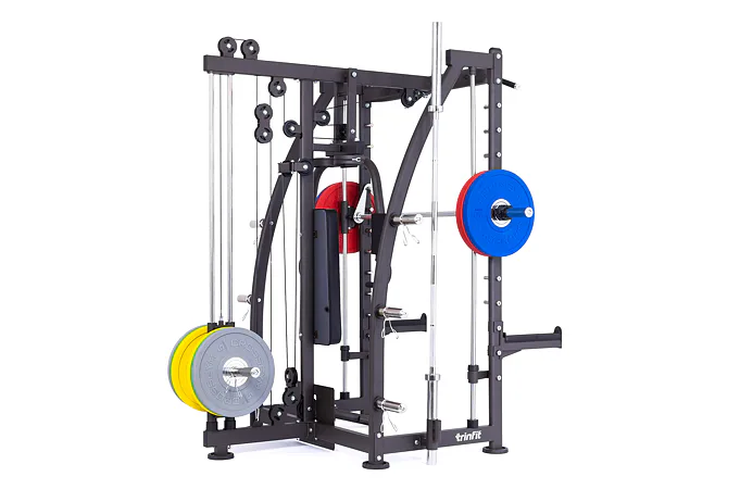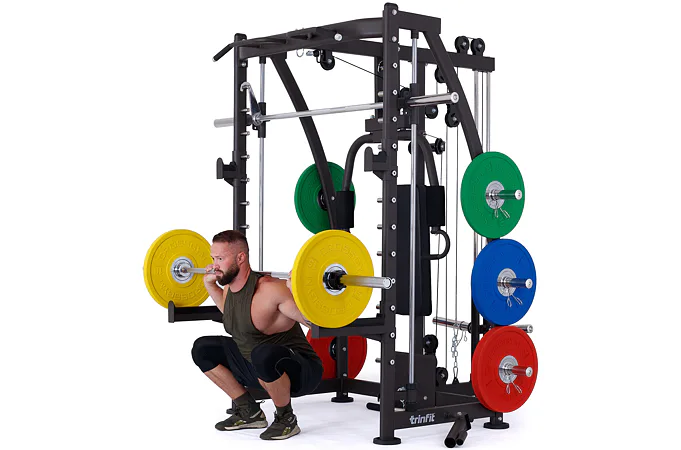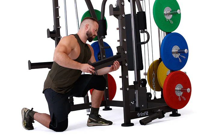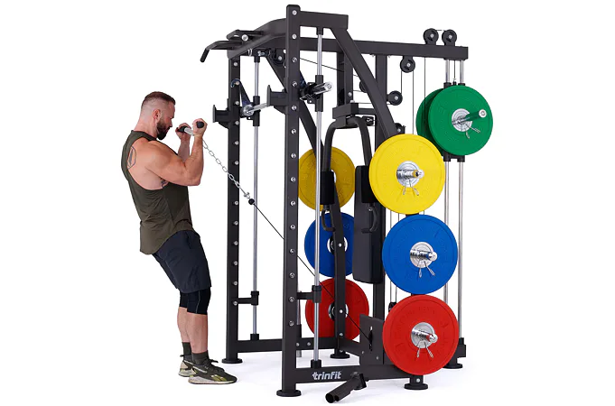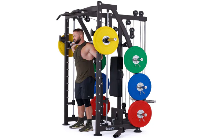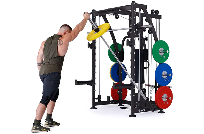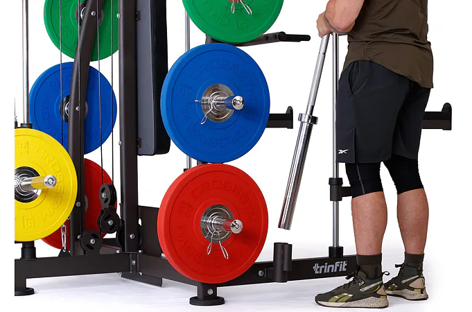 Multipress TRINFIT Multi Smith CX40 využívá jako závaží kotouče, je tedy pouze na vás, jakou zátěž si zvolíte. Je možné použít kotouče s průměrem 25 mm a díky redukcím také olympijské kotouče s průměrem 50 mm. Zároveň nabízí nepřeberné množství druhů cvičení formou tricepsových kliků, tlaků na prsa, ramena, kladek, peck deck atd..