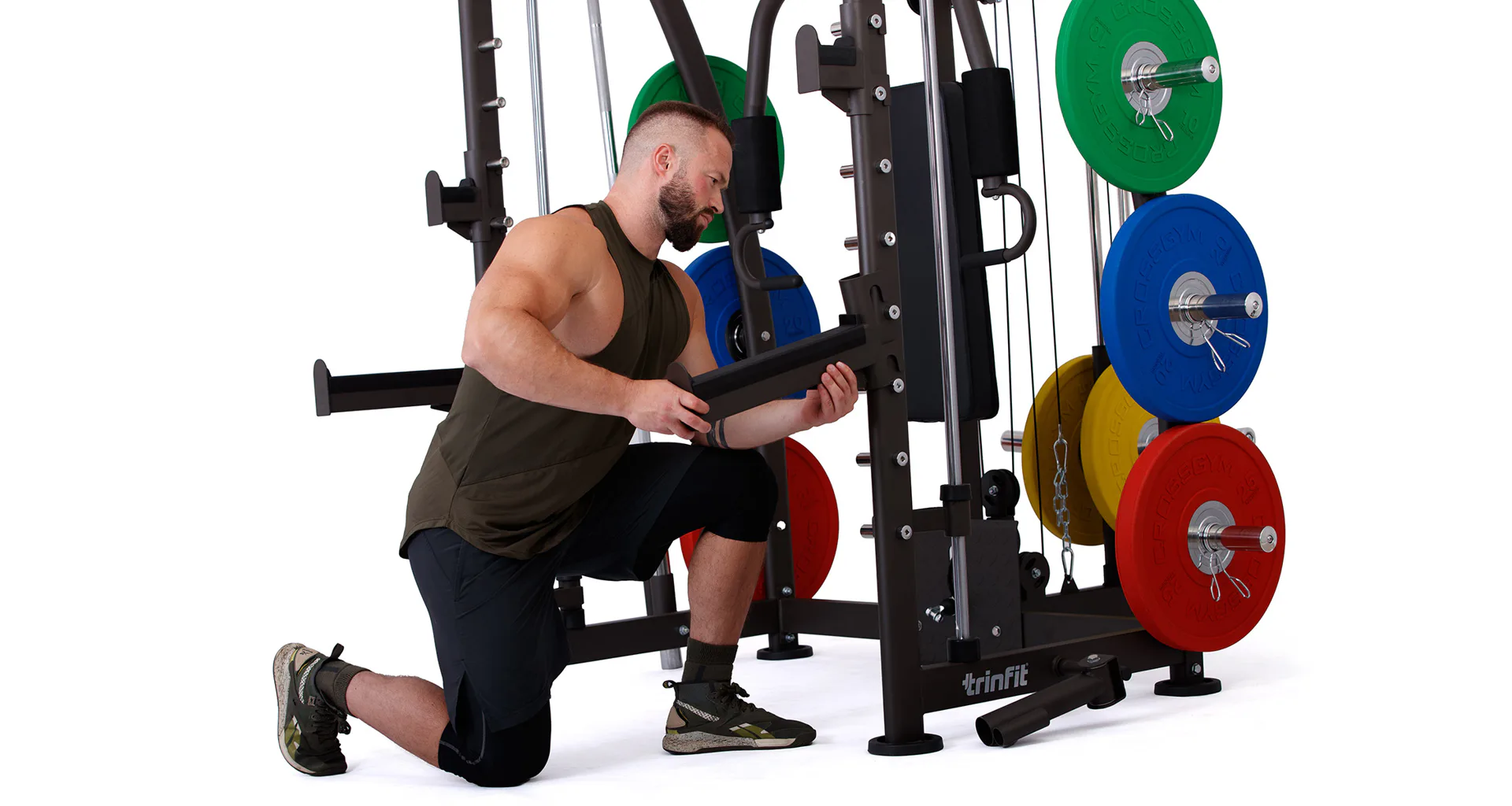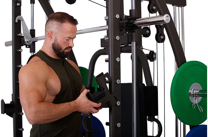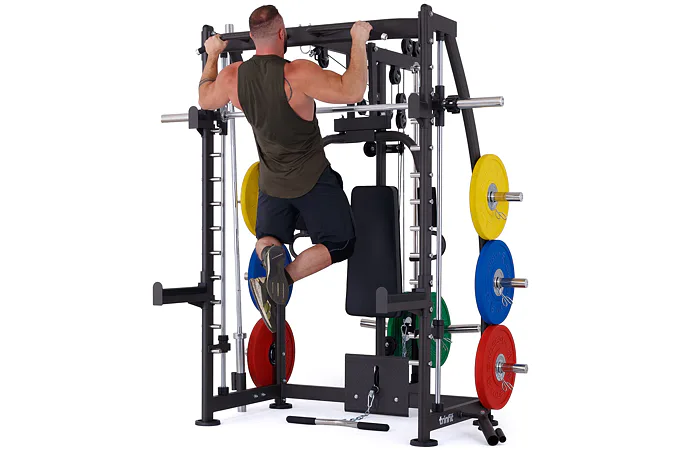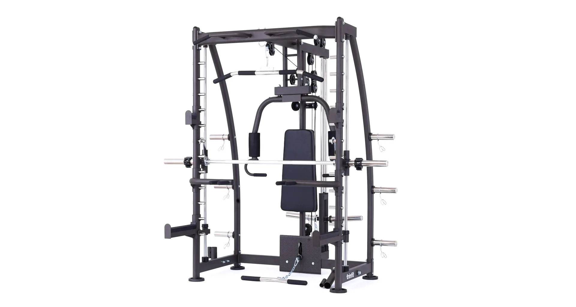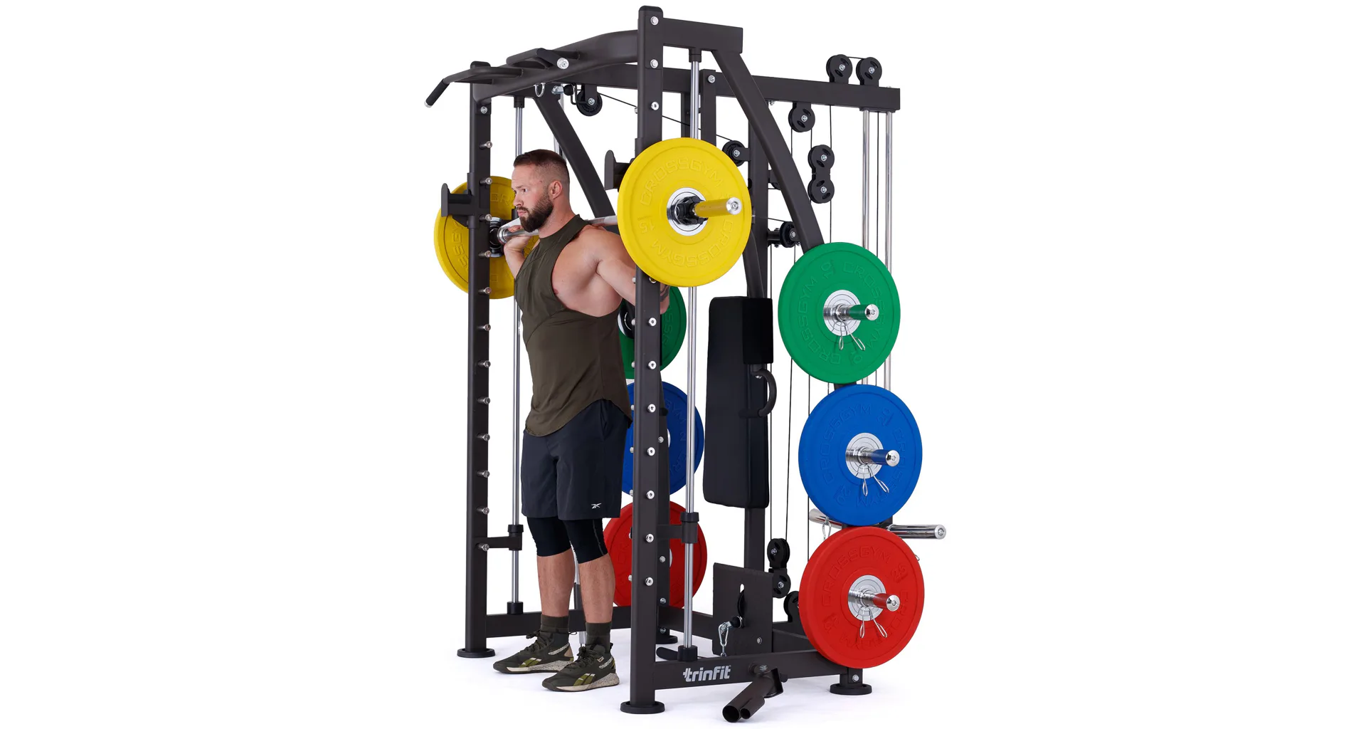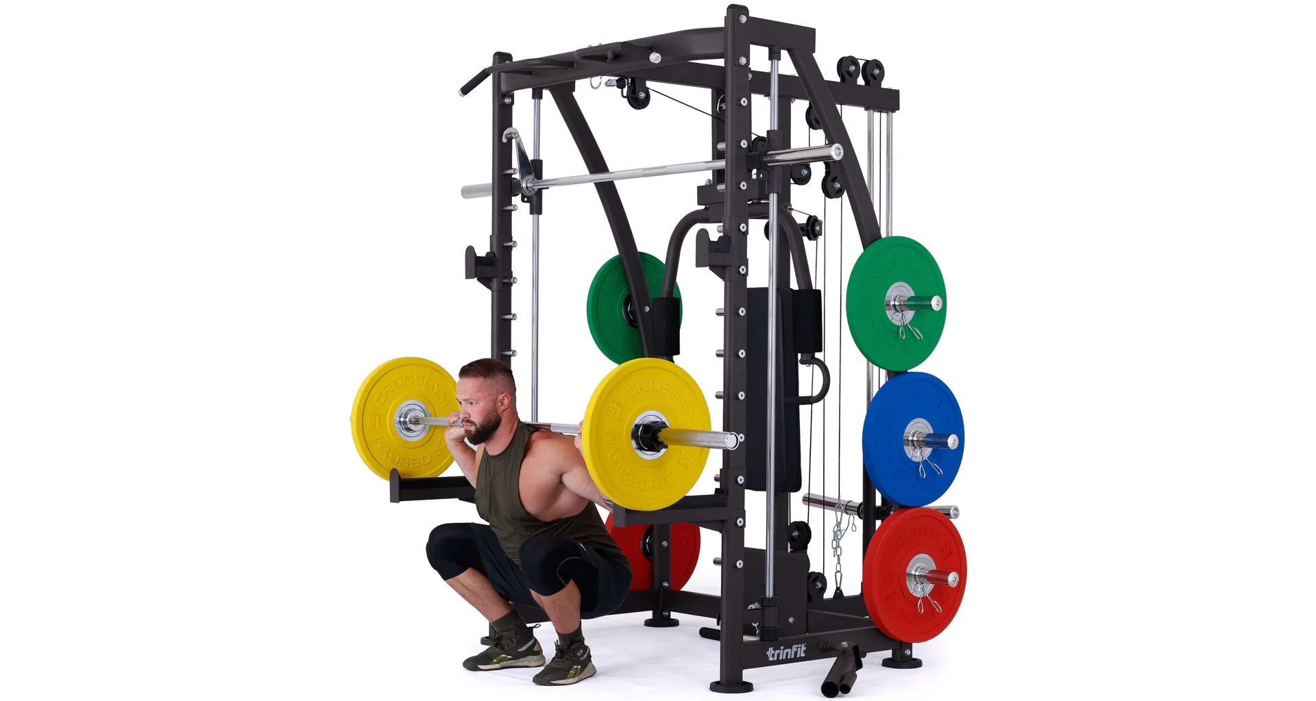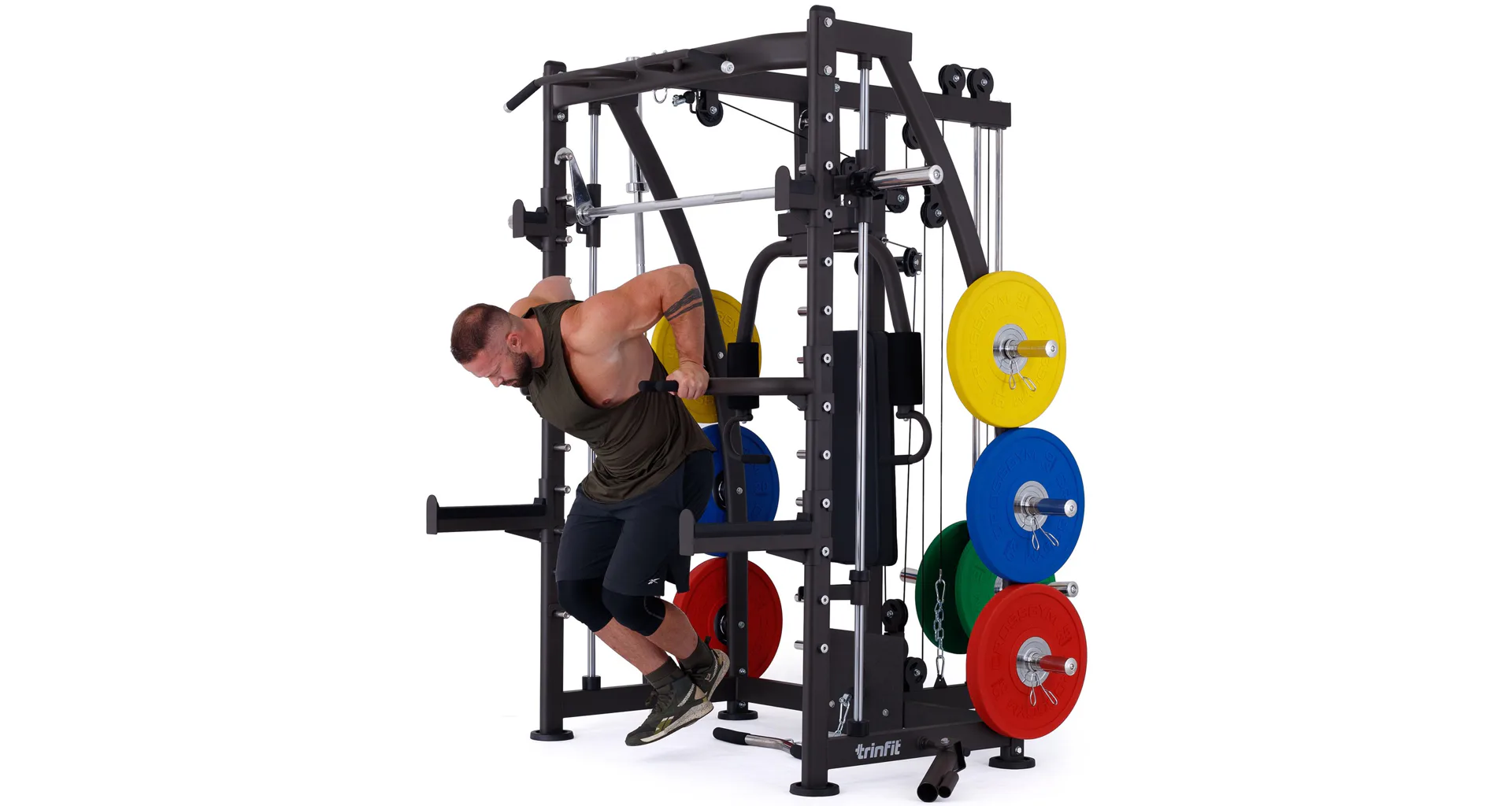 Multipress TRINFIT Multi Smith CX40 využívá jako závaží kotouče, je tedy pouze na vás, jakou zátěž si zvolíte. Je možné použít kotouče s průměrem 25 mm a díky redukcím také olympijské kotouče s průměrem 50 mm. Zároveň nabízí nepřeberné množství druhů cvičení formou tricepsových kliků, tlaků na prsa, ramena, kladek, peck deck atd..